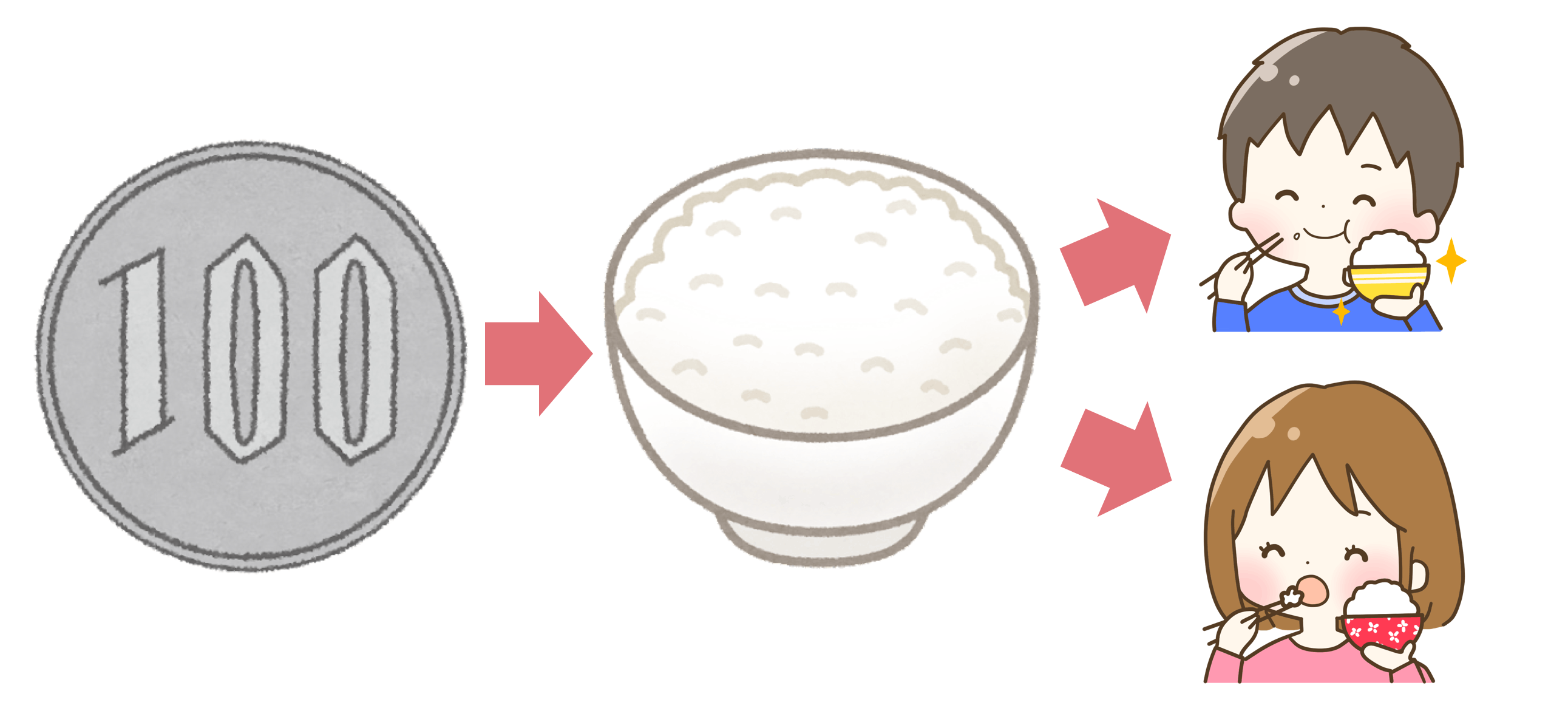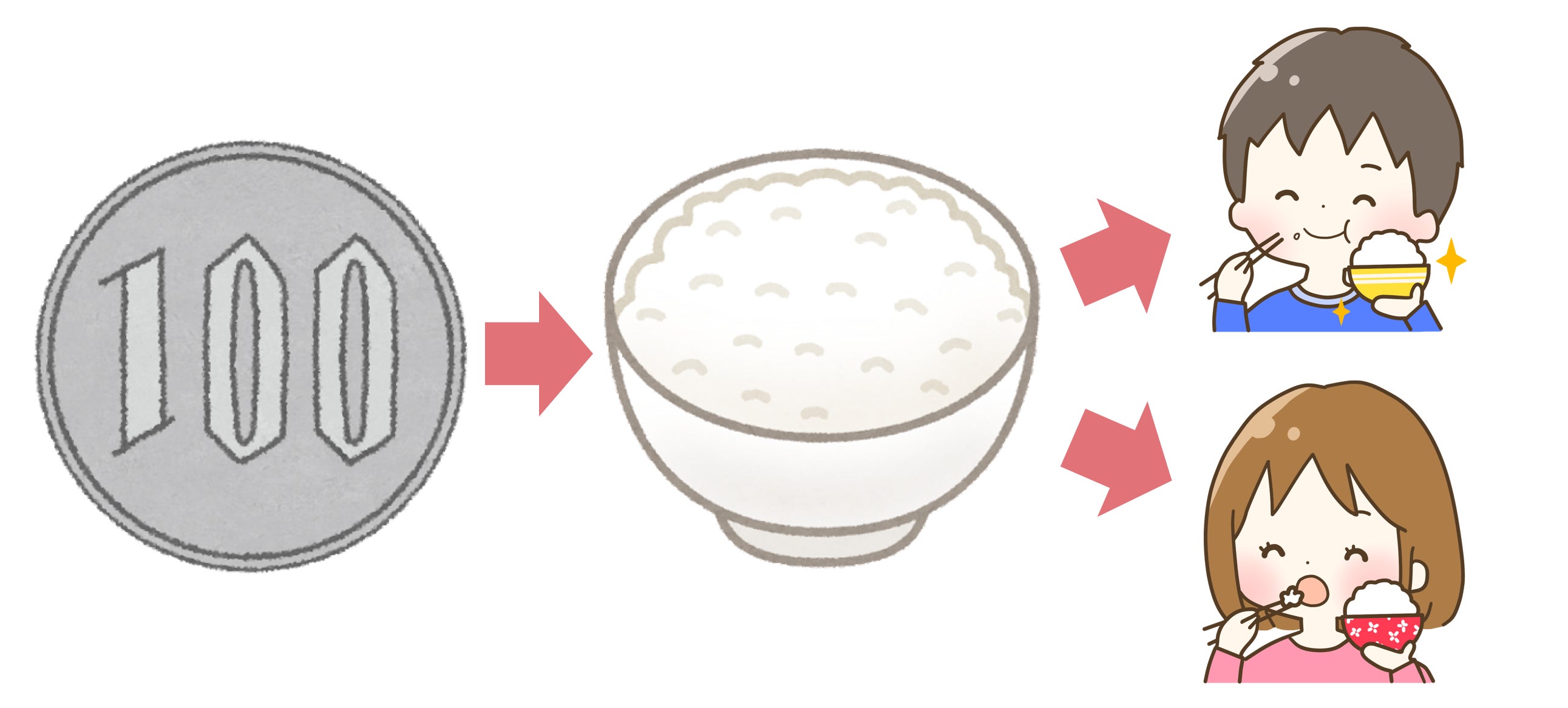 皆さまからいただいた支援金100円につき、ごはん茶碗1杯の新米が支援されます。