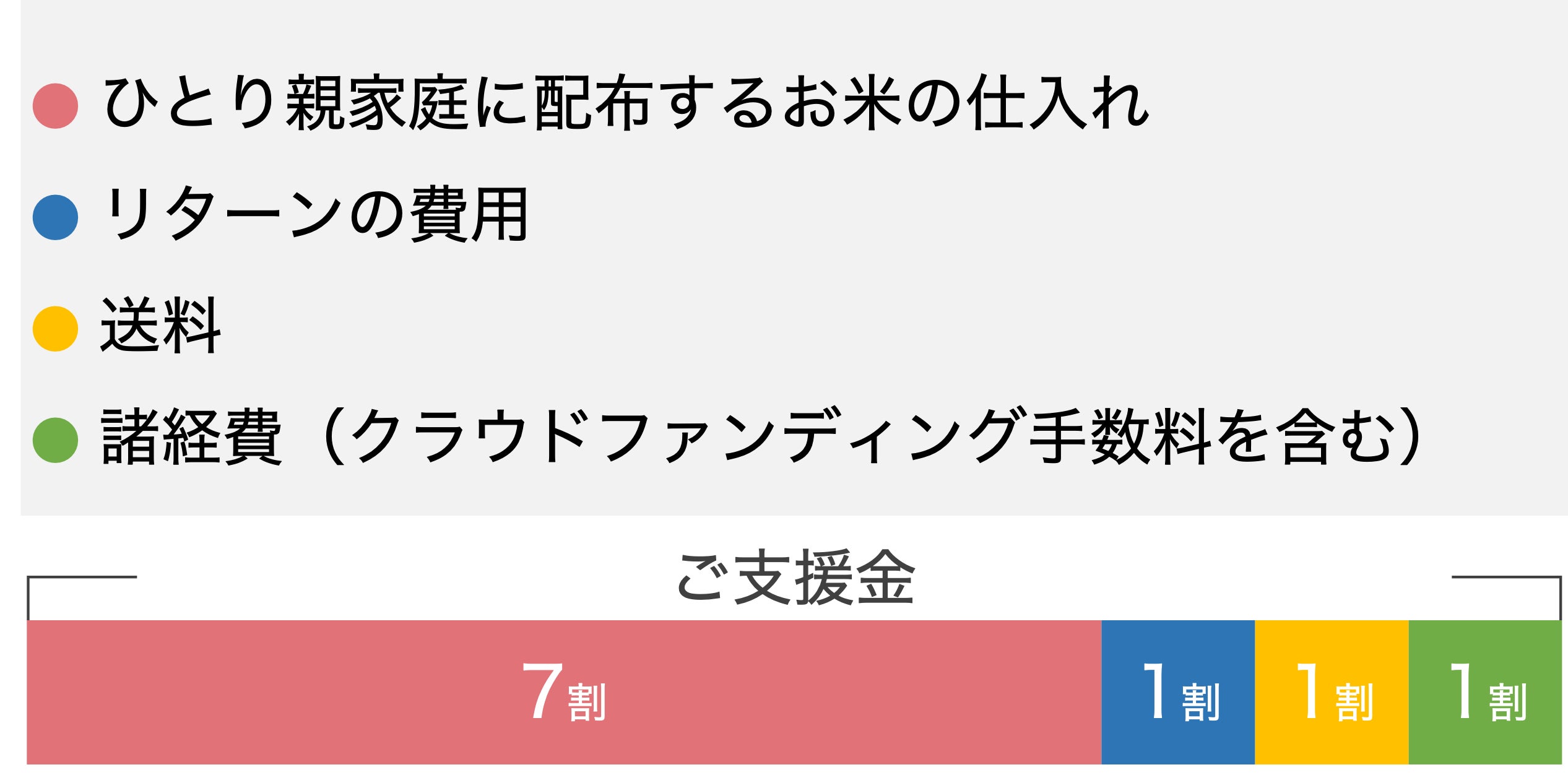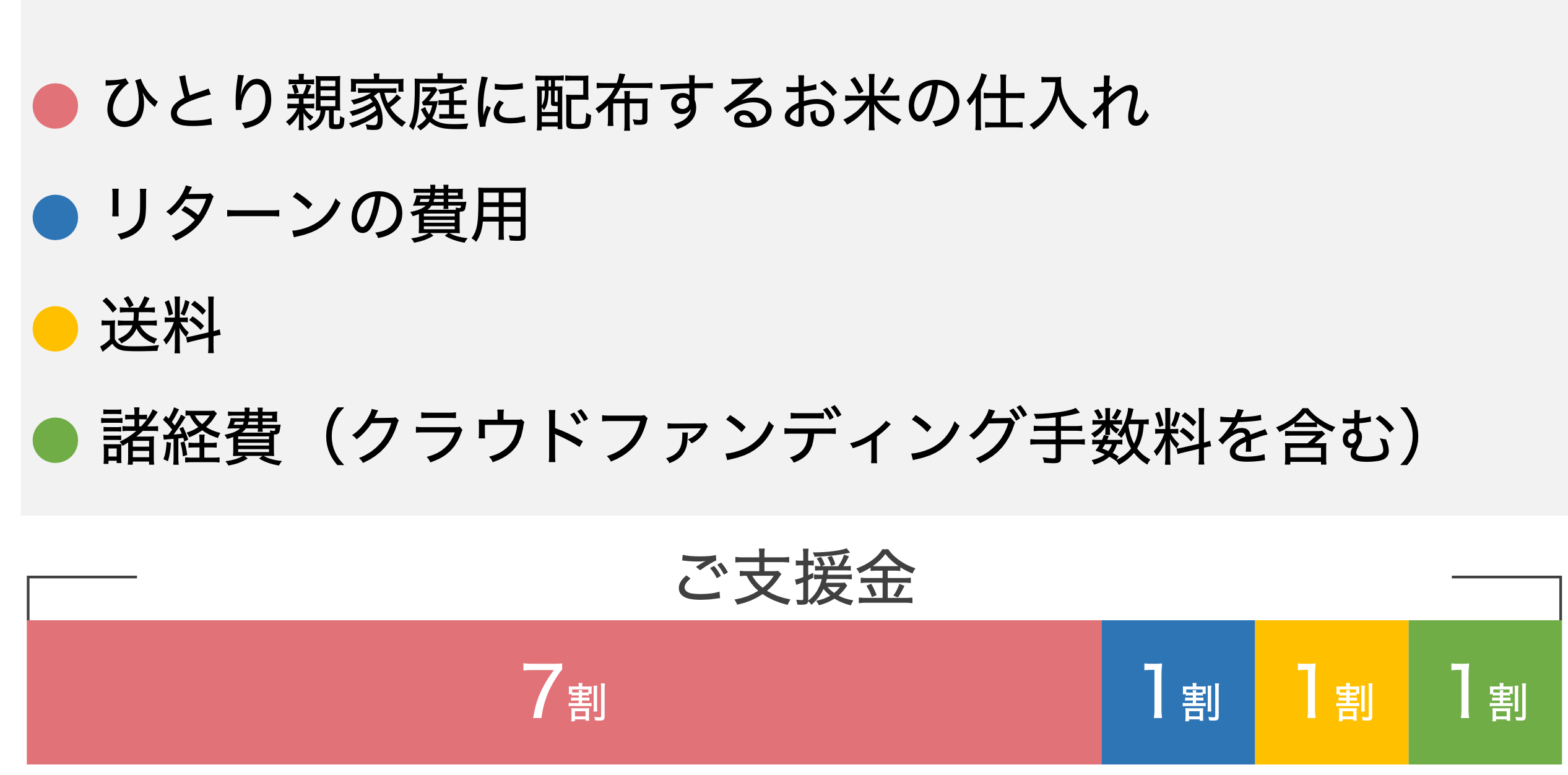 皆さまからいただいた大切なご支援金を元手に、私たちが心を込めて作ったお米をひとり親家庭に届けます。
