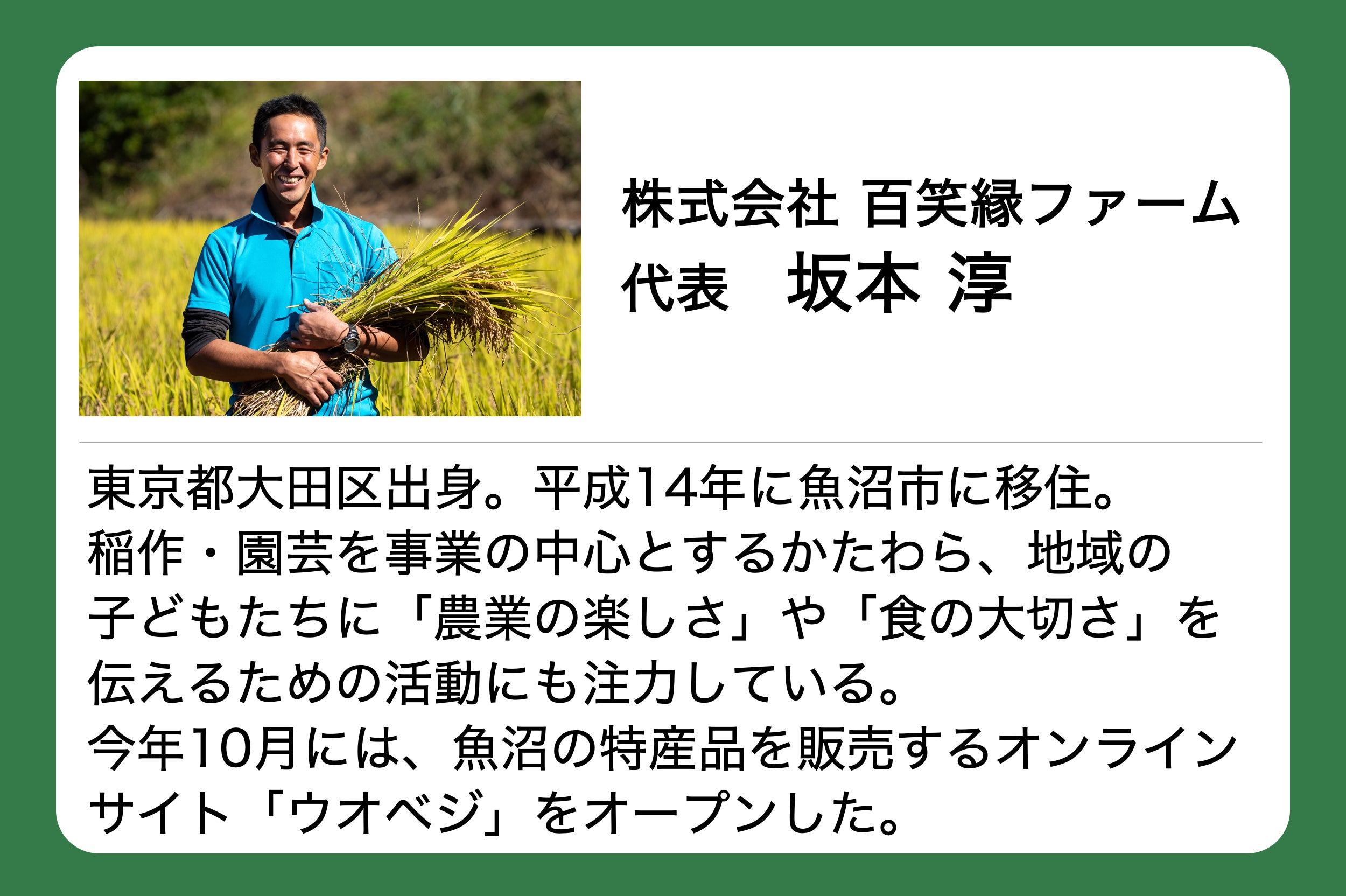 株式会社百笑縁ファームの坂本淳(さかもと じゅん)です。