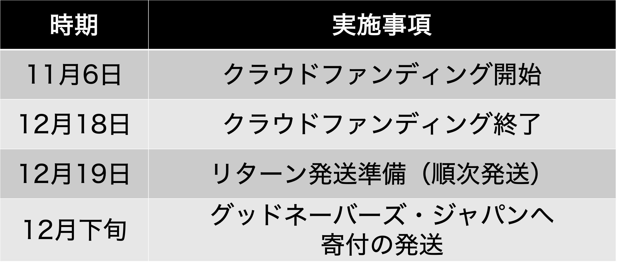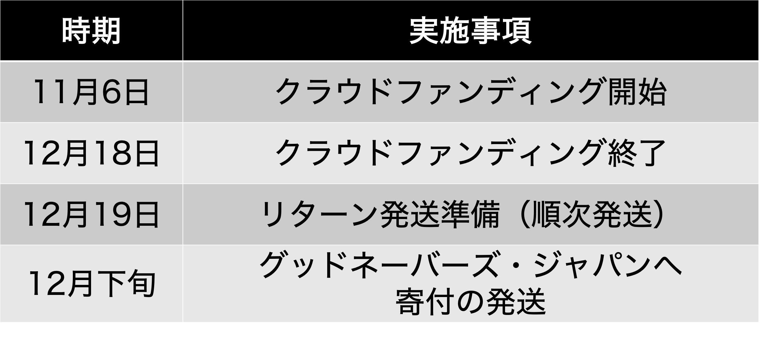 本プロジェクトはAll-in方式で実施します。目標金額に満たない場合も、計画を実行し、リターンをお届けします。