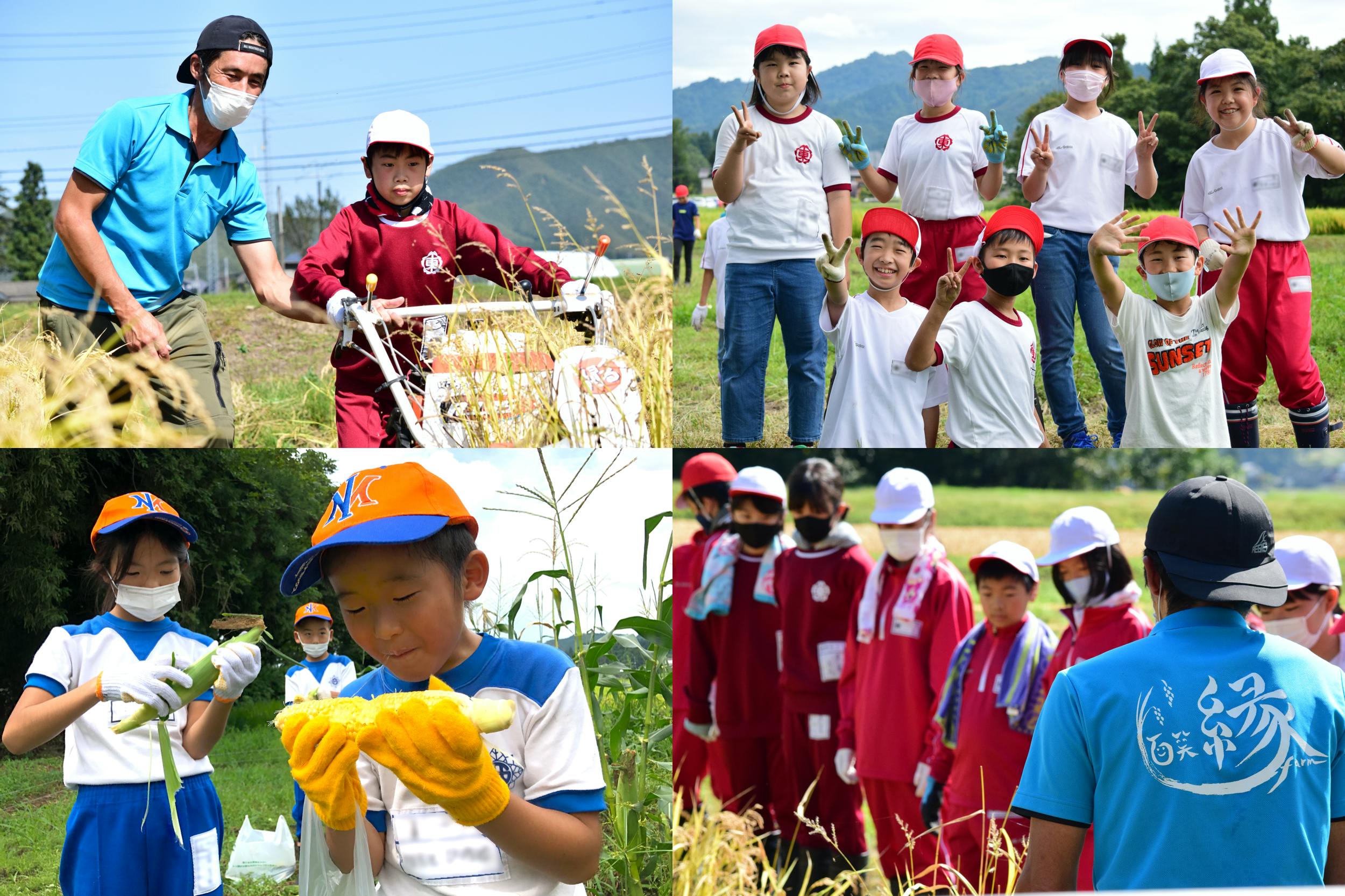地元の小学校と連携し、授業の一環として各学年が米や野菜を作り、最終的にそれらの食材は子どもたちが食べる給食に使われます。