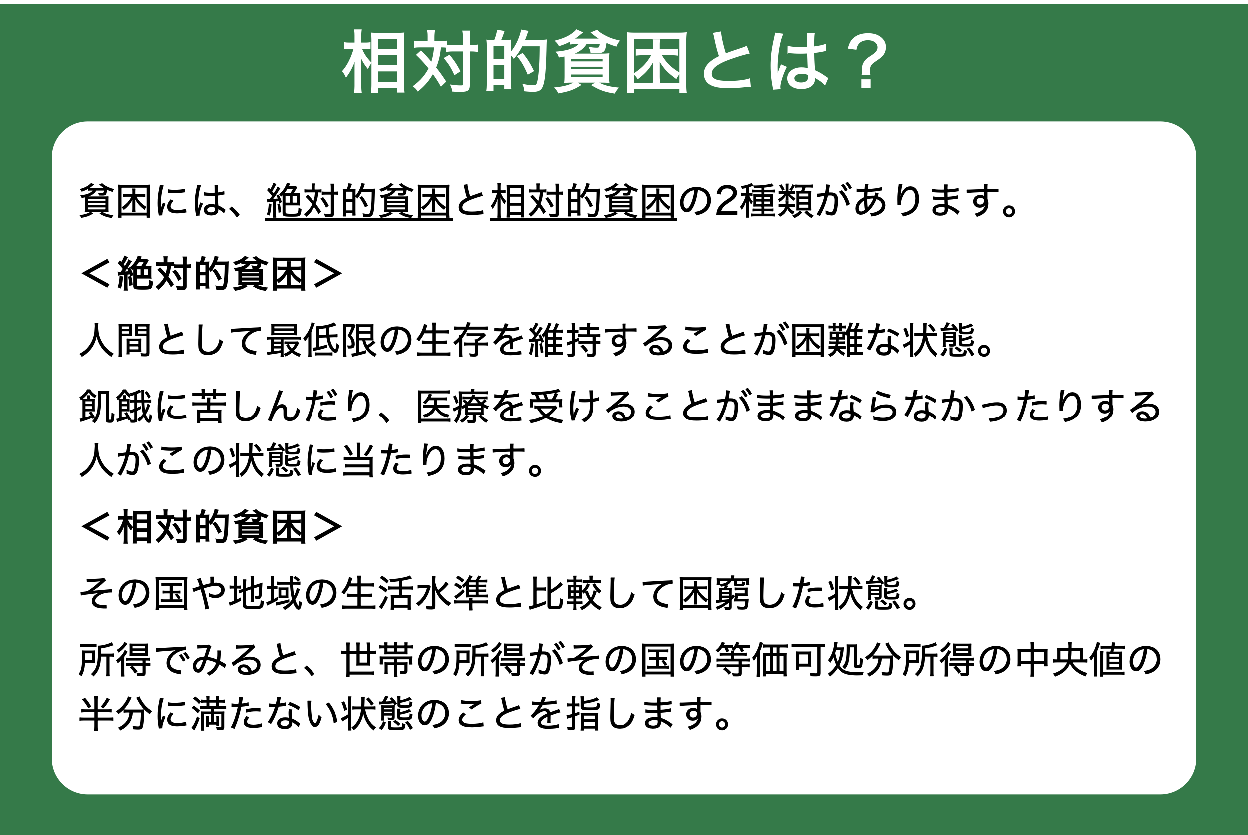 特にひとり親家庭では、子どもの約2人に1人が相対的貧困の状態で、これは先進国の中でも最悪な水準だと言われています。