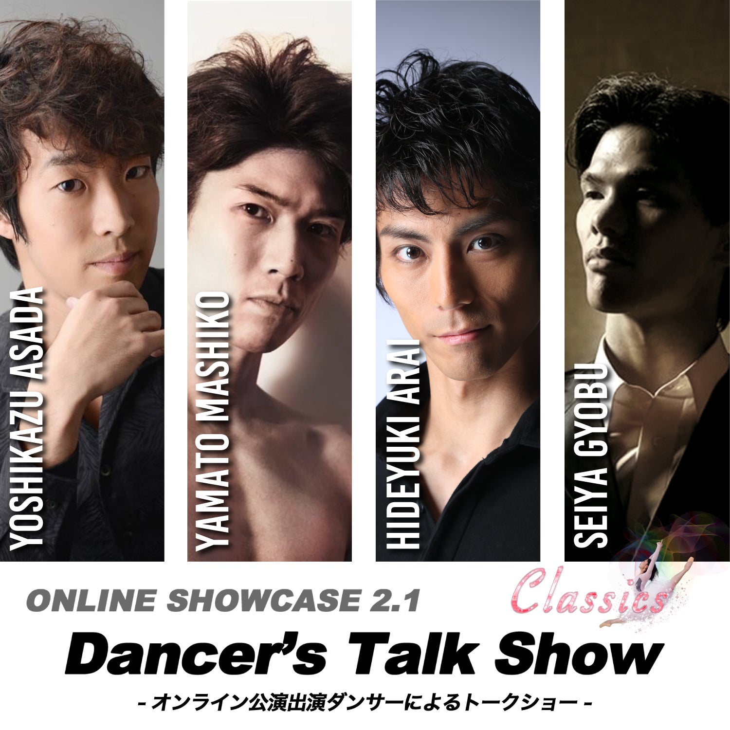 本公演の終了後、『ONLINE SHOWCASE 2.1 Classics』出演ダンサーの浅田良和、益子倭、荒井英之、刑部星矢によるトークイベントの開催が決定致しました。