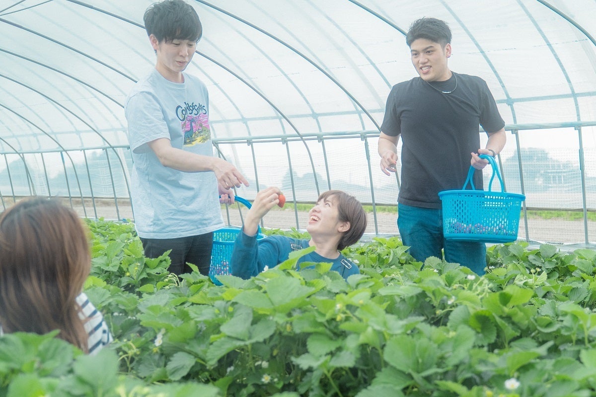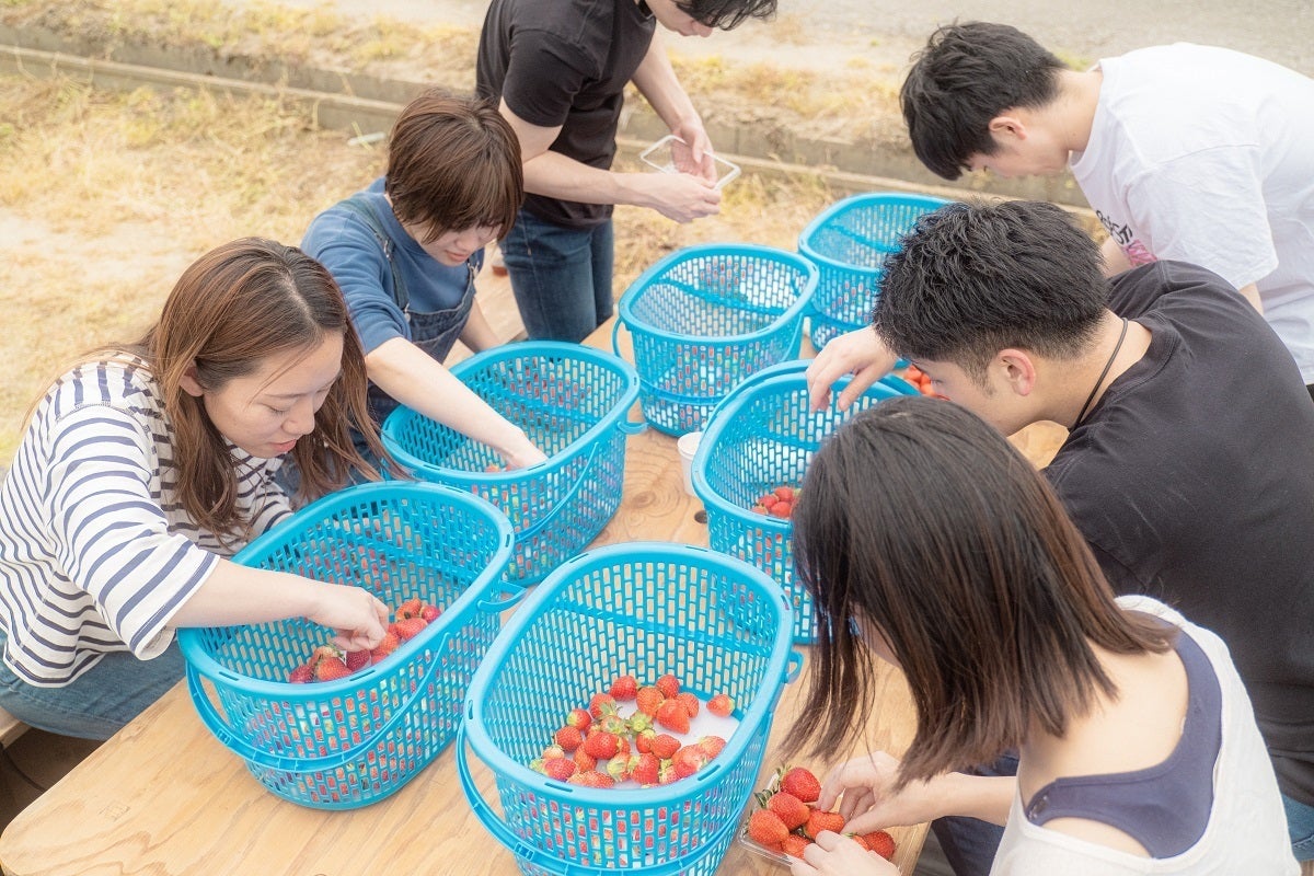 ※写真はいちご摘み体験。(体験可能時期:2月~5月)所謂いちご狩りではなく、収穫してお店で並んでるようなパック詰めまでの一連の農家のお仕事を体験します。