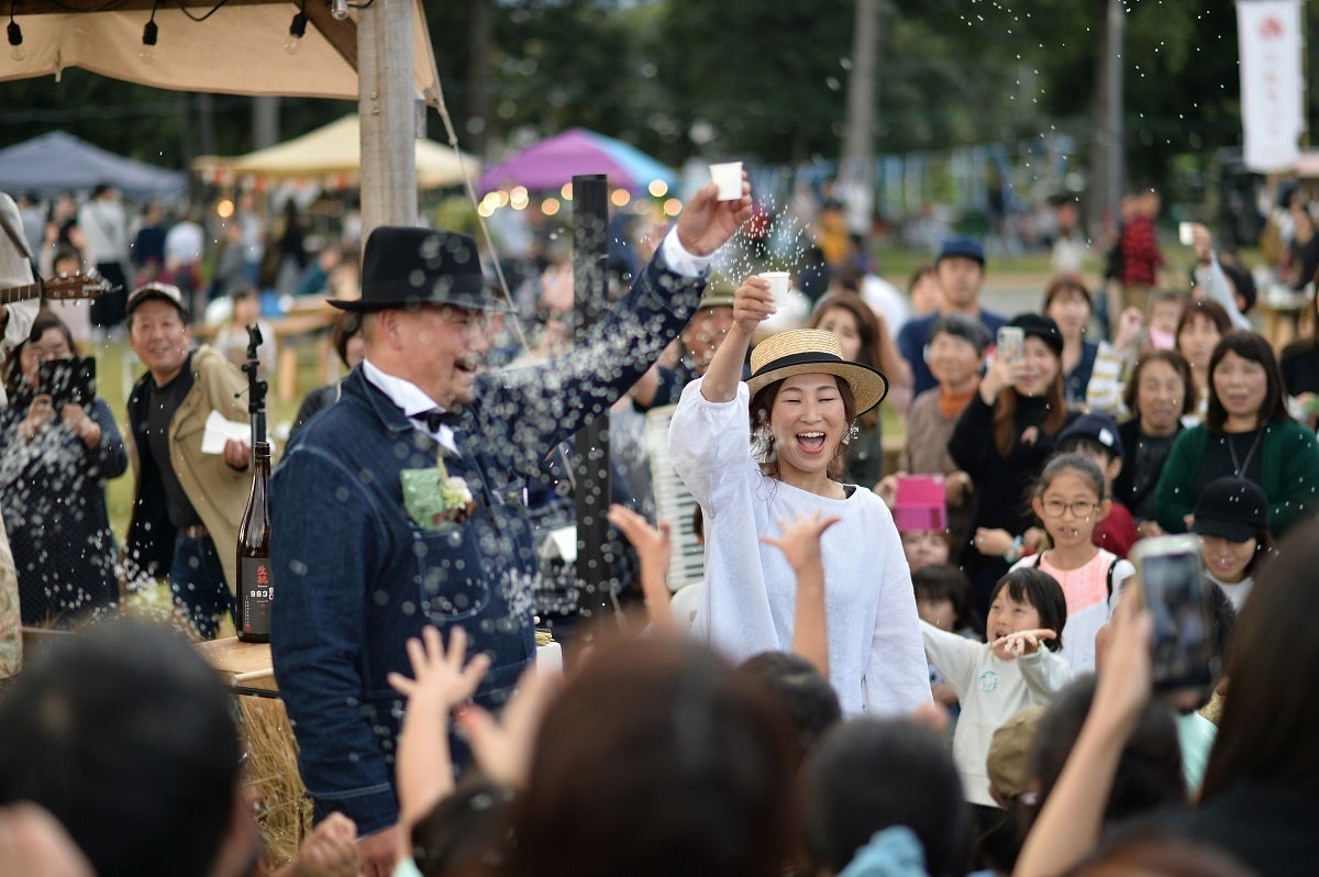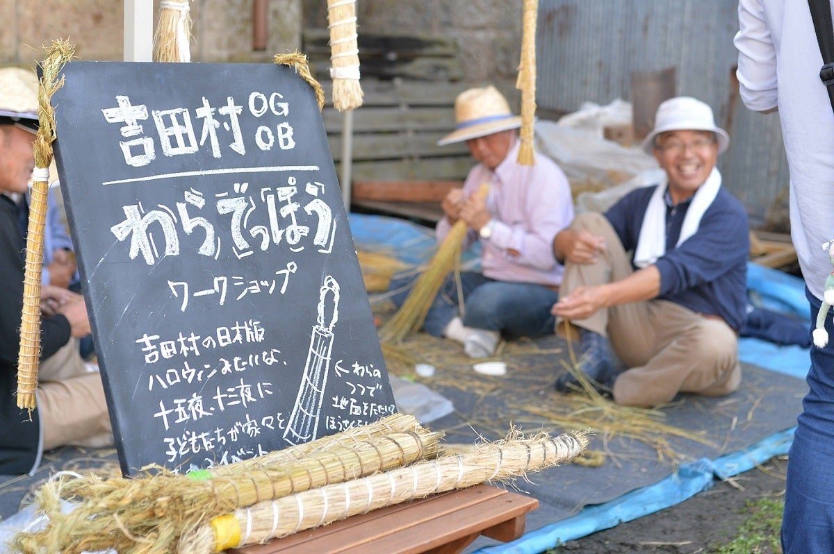 吉田村まつりは初回は台風直撃の日の開催となり集客数は600人とこじんまりと始まりましたが、翌年15年は3000人、16年は5000人と年々来場者は爆増し、コロナ禍前の19年は過去最大の8000人まで増え、県内でも有名イベントに成長しました。回を重ねる毎に地元の子育て世代やシニア層を巻き込み、運営側も人員を増員しながら、お洒落イベントの中に地元のママさんたちが主体となった子供向けブースやシニア層が主体となった婦人部の地域食のブースや伝統文化の「藁でっぽう(十五夜、十三夜に地域の子供たちが近隣の家々を回り、藁を束ねて棒状にしたもので歌いながら地面を叩いて豊作を祈りおひねりを貰って回る、日本版ハロウィンみたいな風習)」のワークショップをおじさんたちが行ったり、はたまた、イベント内イベントで参加者を巻き込んだ農村ウェディングまで行ったりと、村人(地元民)が旅人(来場者)を楽しませたい、そして村人も楽しみたいというほっこりするようなまさに多幸感に溢れるイベントに育ちました。コロナ禍に入って昨年、今年と開催できていませんが、来年から春(早苗饗)、秋(収穫祭)の年2回開催していく予定です!