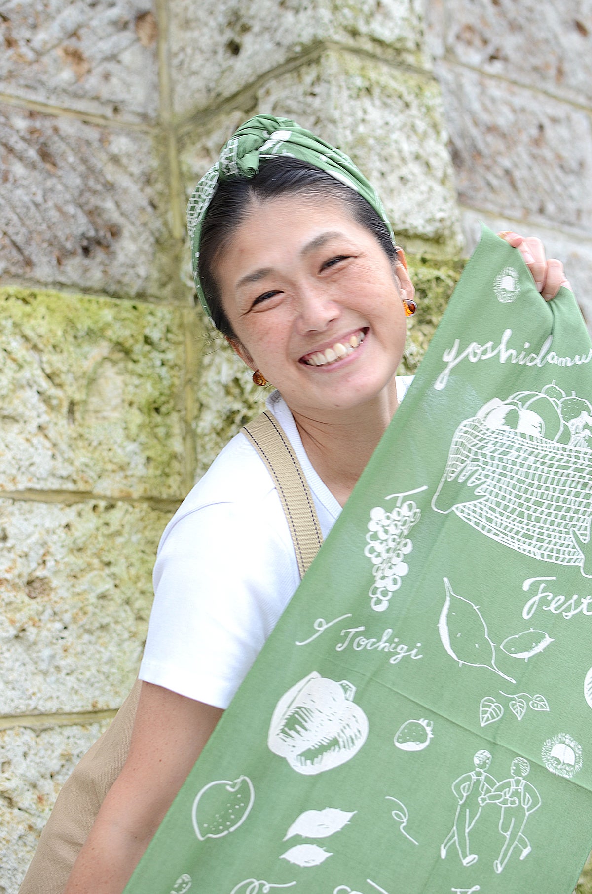 ◆スタッフも愛用のオリジナル手ぬぐい(グラビア風で撮ってみた♡)②食べて応援!吉田村お米とお野菜セット