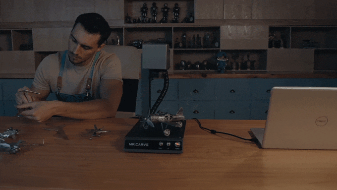 MR.CARVEのレーザーヘッドは180°回転可能、ベースによる高さ制限を突破します。