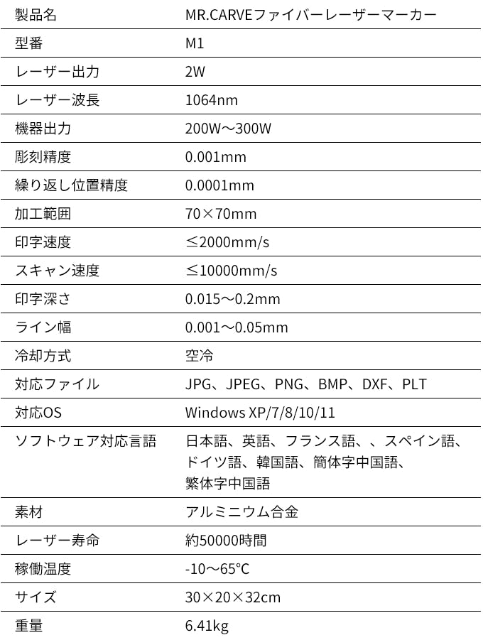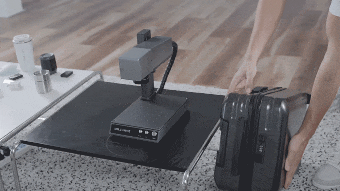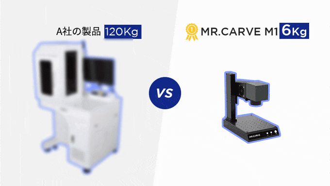 従来のファイバーレーザーマーカーは、大型で重さも20㎏以上のものが多いです。MR.CARVEは高性能ながらわずか6.41kgで持ち運びやすいです。いつでもどこでも彫刻が行えます。