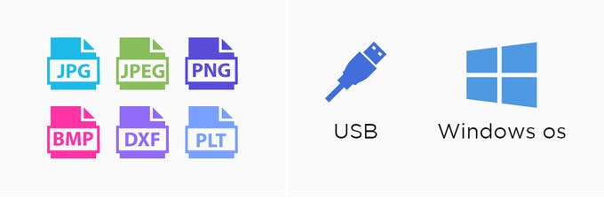 対応ファイル:JPG、JPEG、PNG、BMP、DXF、PLTのファイルに対応しています。また、ファイルあたりのサイズ制限はありません。