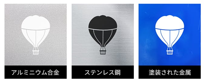 透明なガラスやプラスチックなどは透明で焦点が合わないため、着色する必要があります。マーカーペンで黒く着色しますと彫刻できます。また鏡面や反射率が高い素材にも刻印できません。