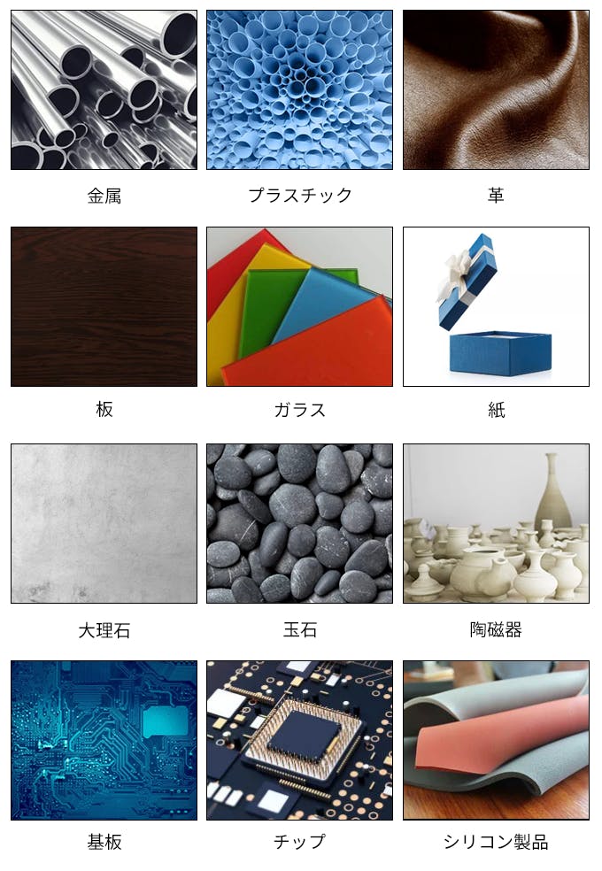 3.金属やプラスチック、革、大理石、陶磁器、シリコン、塗装された板/ガラス/紙など様々な素材に彫刻可能!
