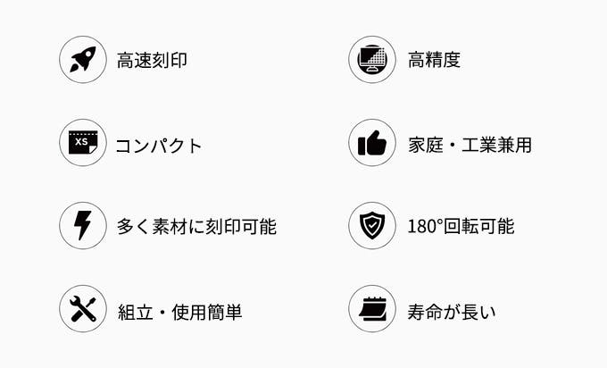 1.印字スピードは従来比20倍アップします*。簡単な文字であればわずか5秒で彫刻完了!