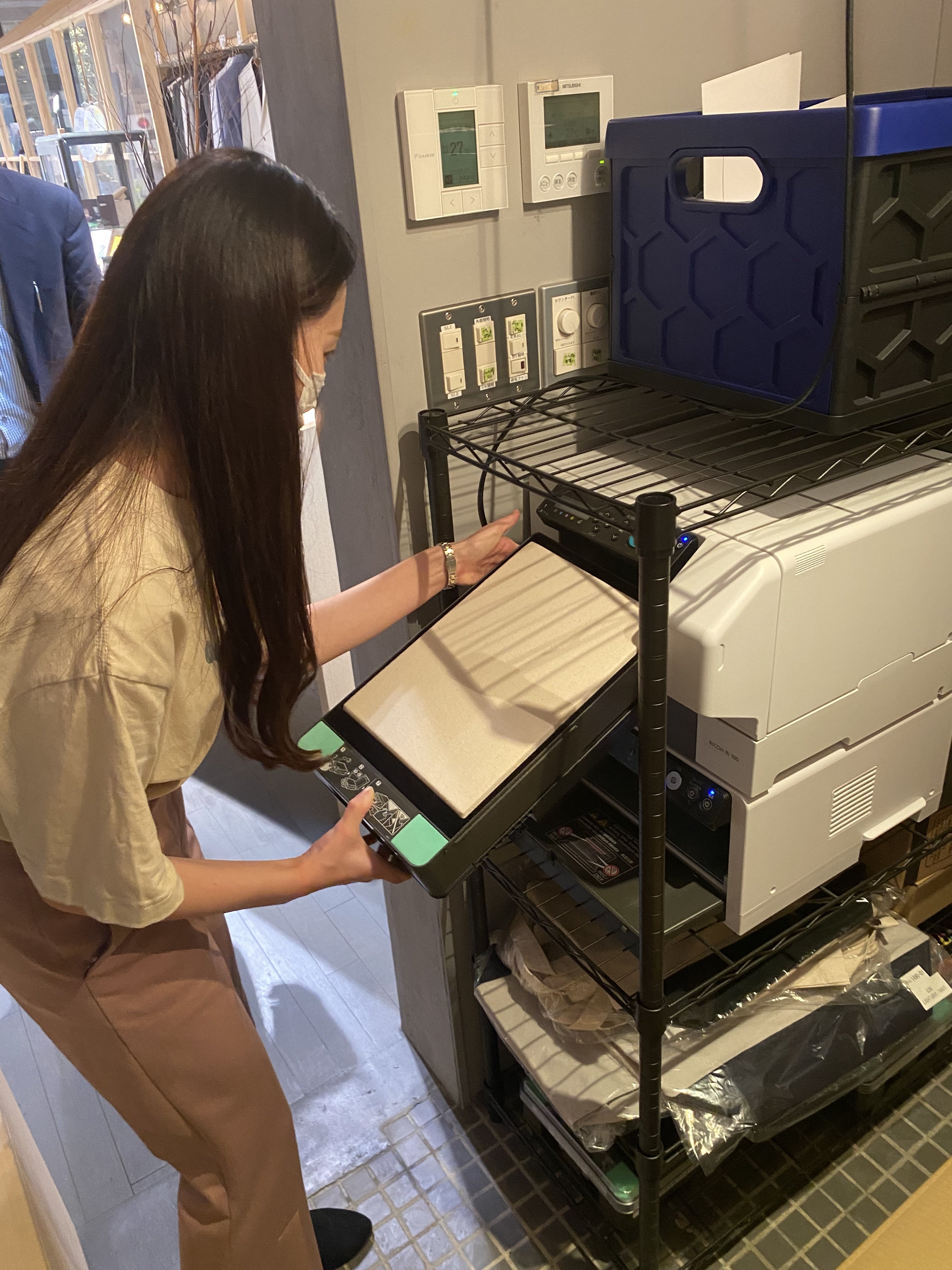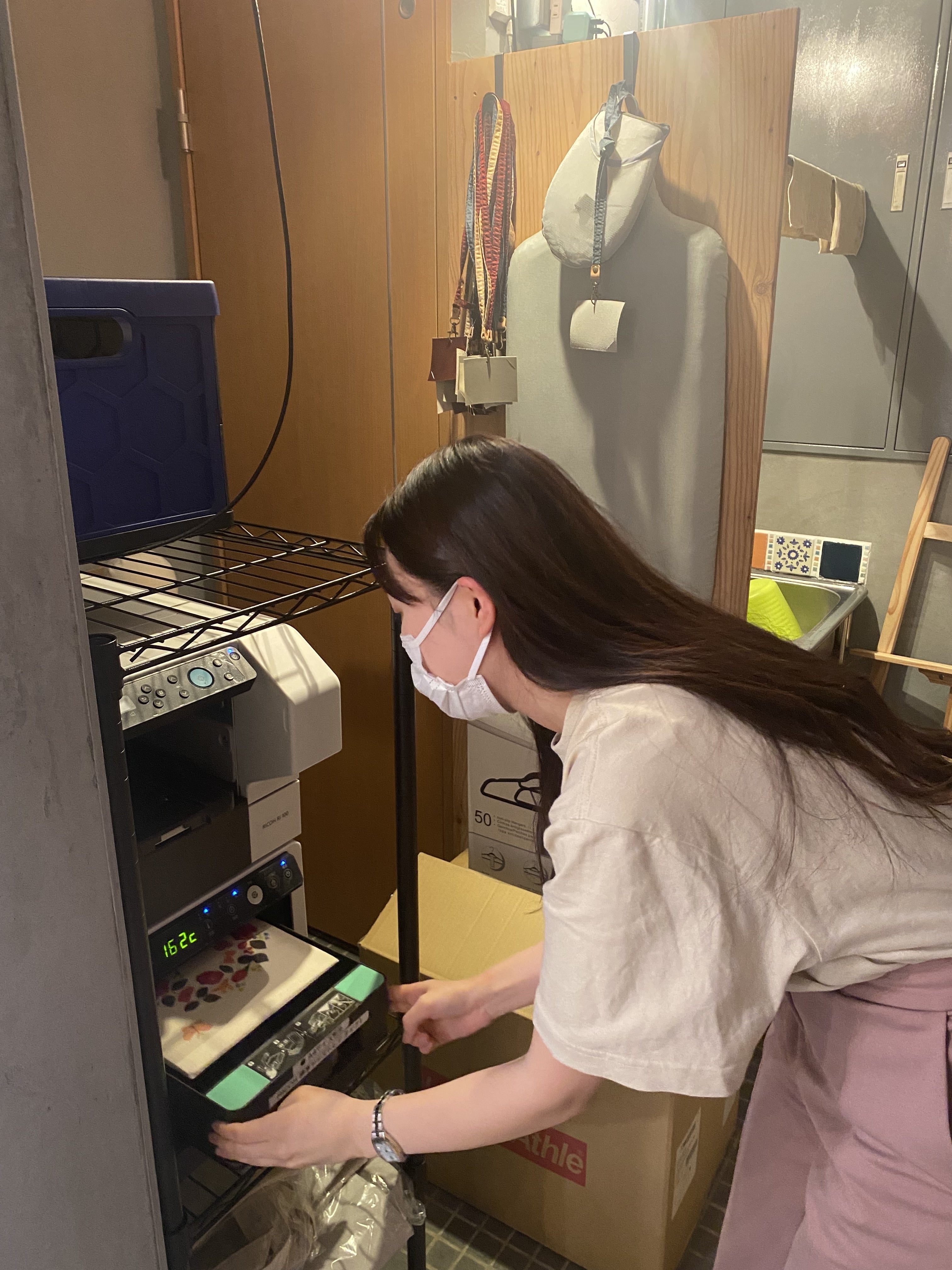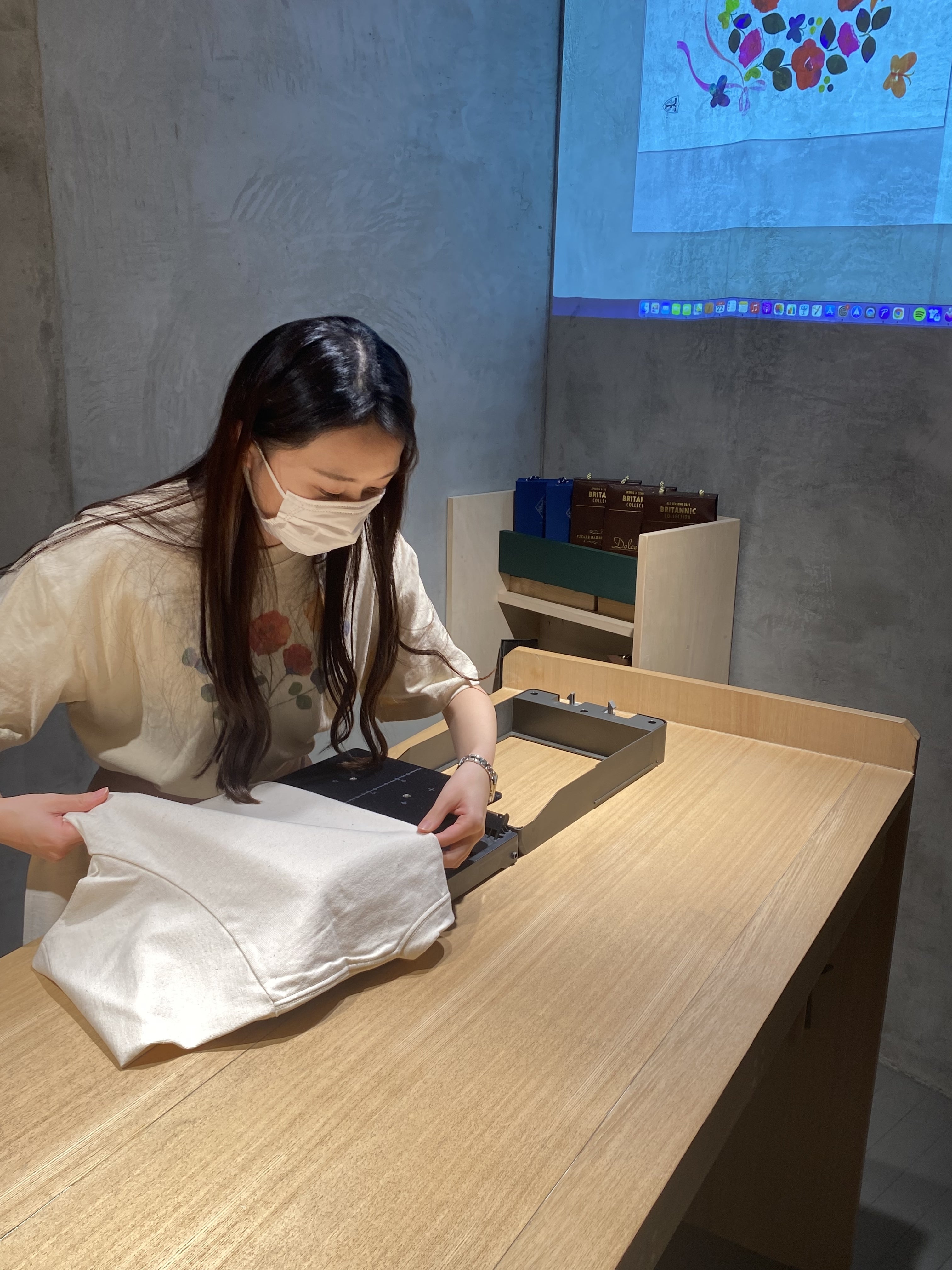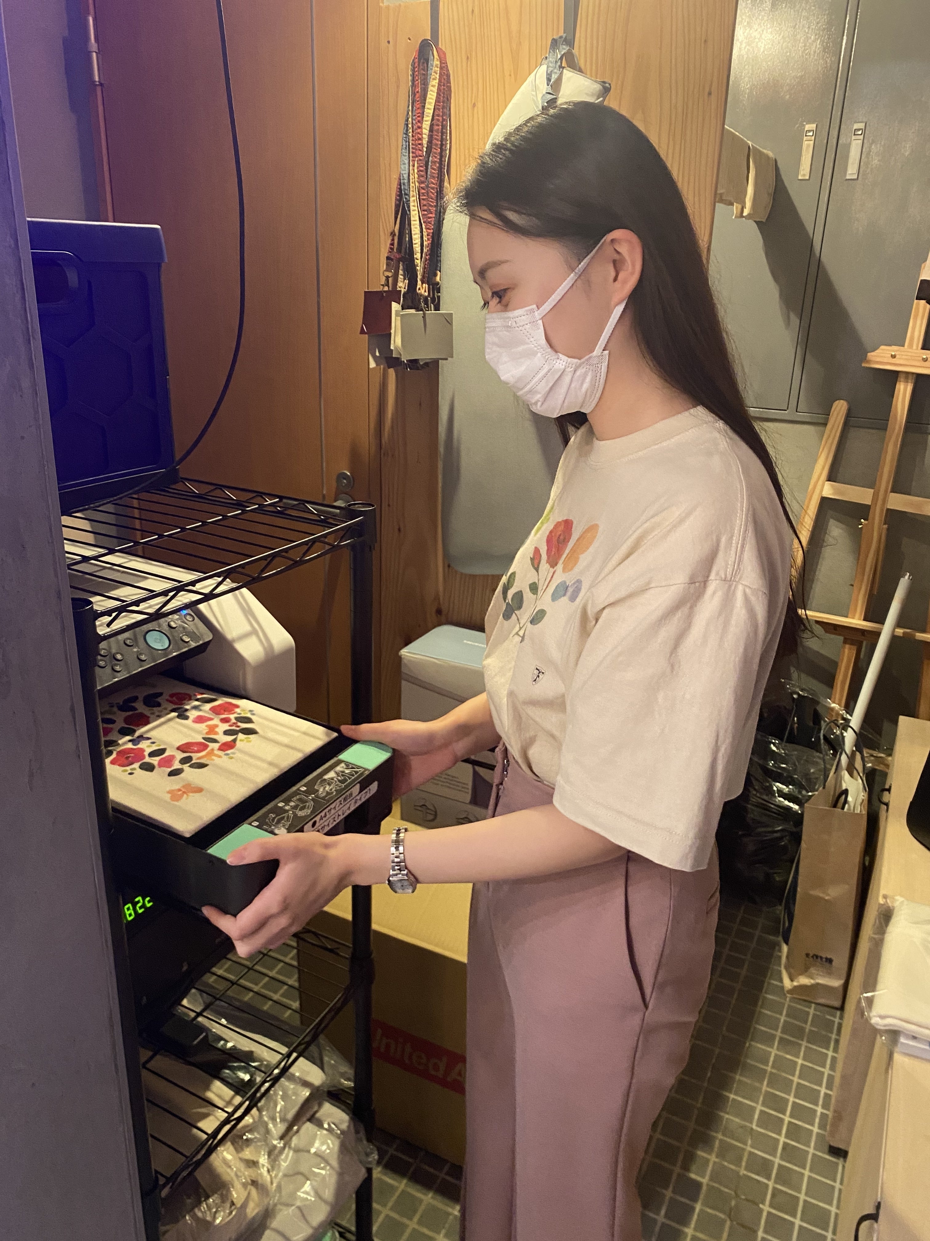 これからTシャツにシステムで設定したデザインを印刷していきます。