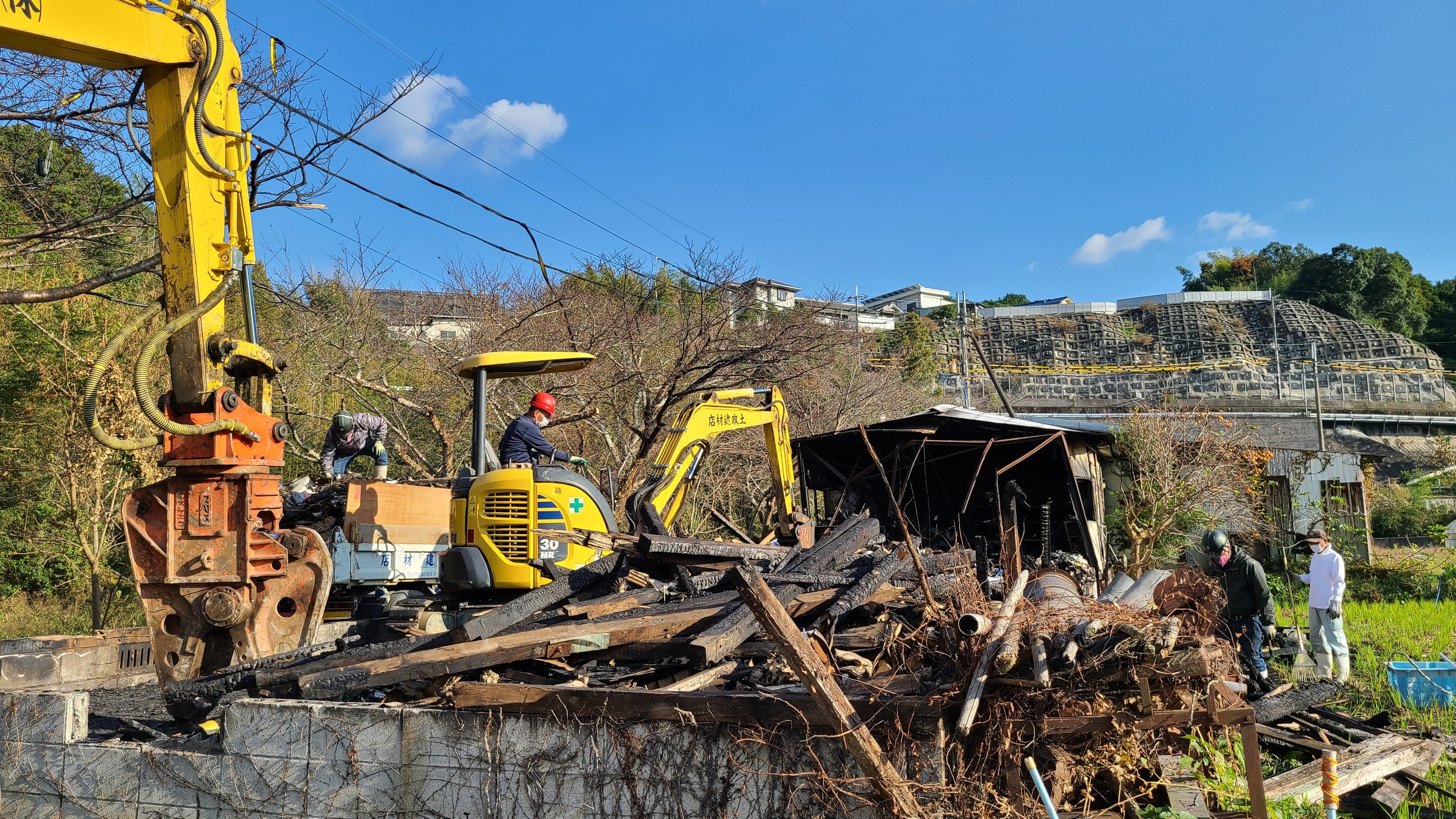 重機が入り解体が進んで行くと屋根が無くなりました。