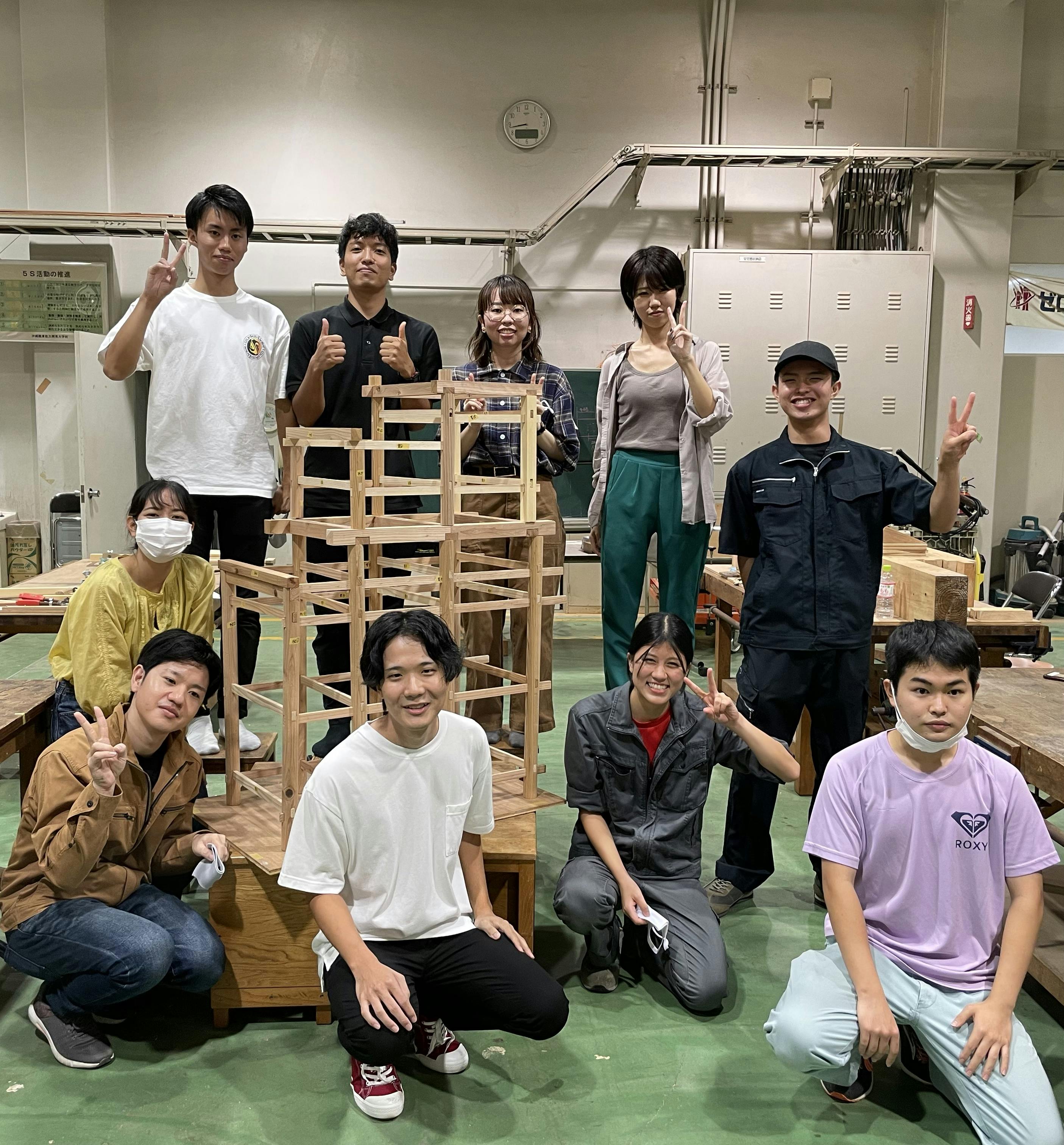 沖縄職業能力開発大学校と琉球大学の建築を学んでいる学生で、この首里城大型模型プロジェクトの為に有志のメンバーが集まりました。