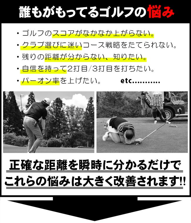 一目で距離がわかる。クラブ選びを迷わなく、自信を持ってパーオンを狙える優れもの!