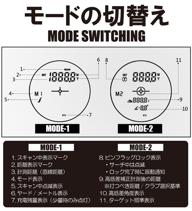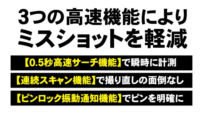 【ターゲットを0.5秒でロック】 し、ワンタッチで目標物までの距離を計測してくれる