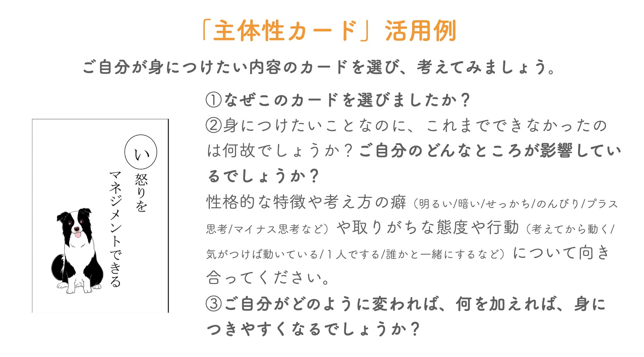 このプロセスを踏むためにも、一人でも手軽に自分を知ることができる「主体性カード」はとてもオススメです。