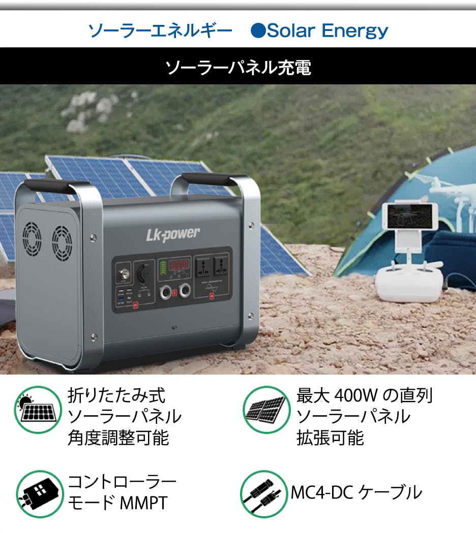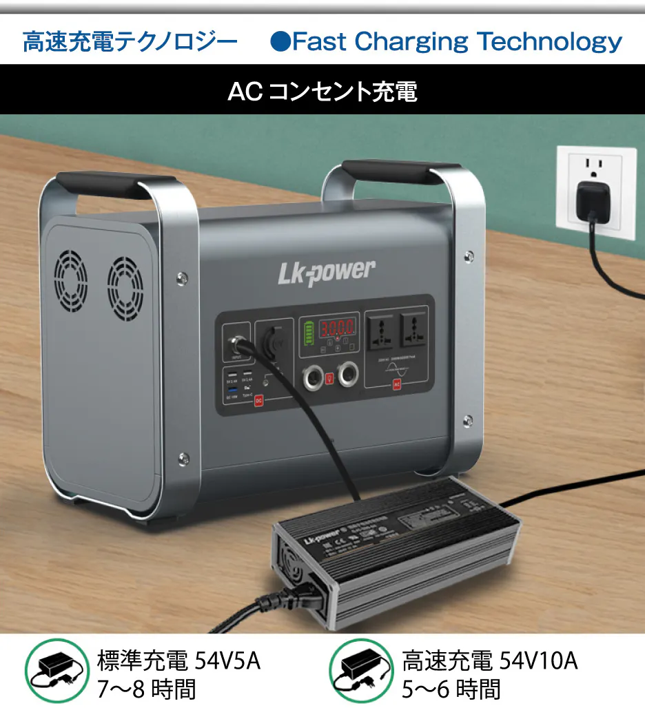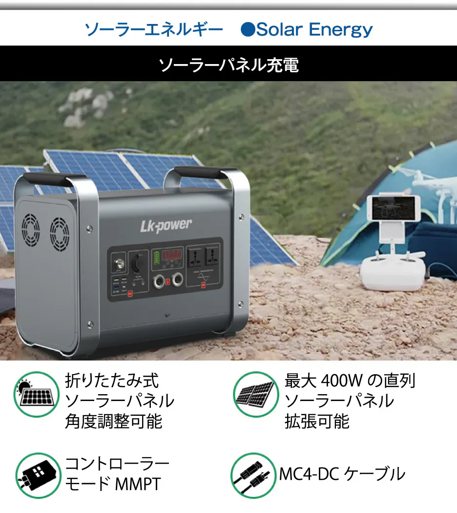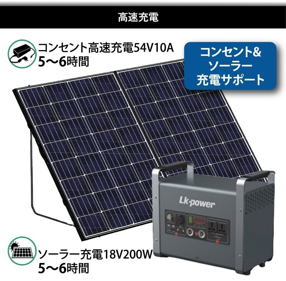 家庭用コンセントとソーラーパネルどちらからも充電可能(約4~6時間)