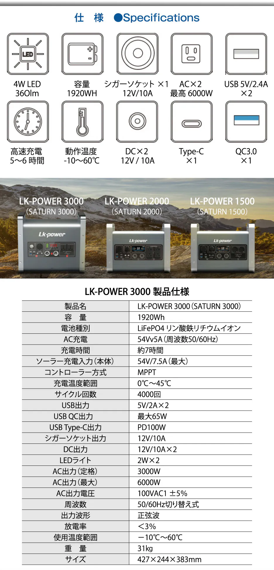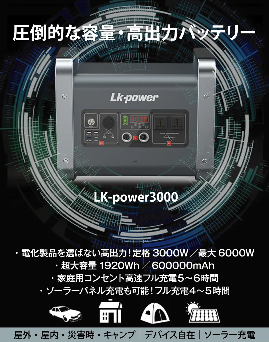 これ一台で、災害時、緊急事、アウトドア、車中泊全てのシーンで活躍