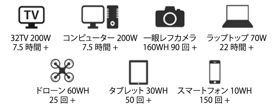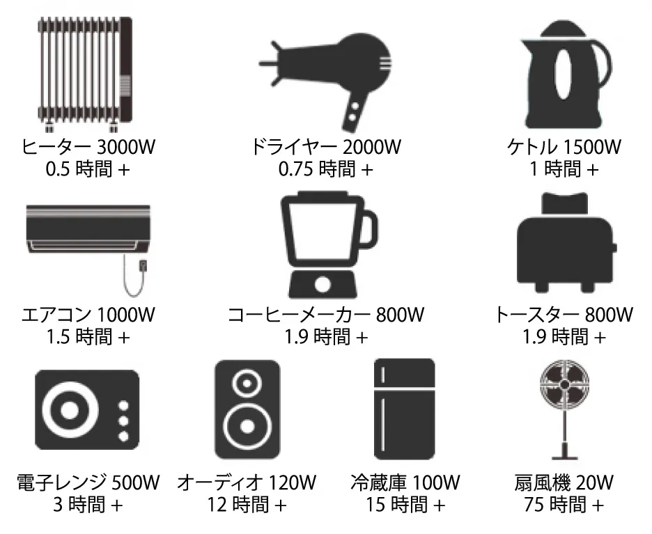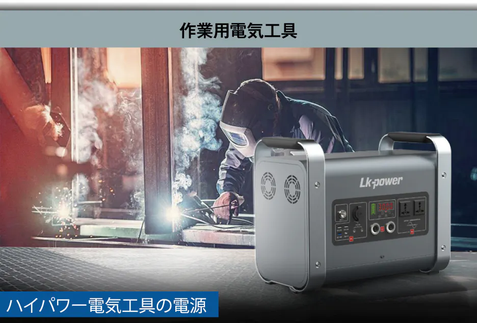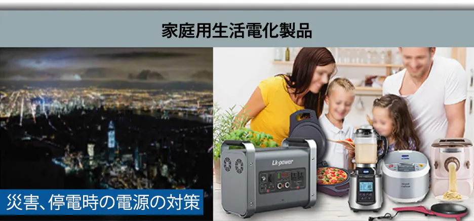 家電から電工具まで様々な電化製品に給電、家庭用蓄電器にも充分な