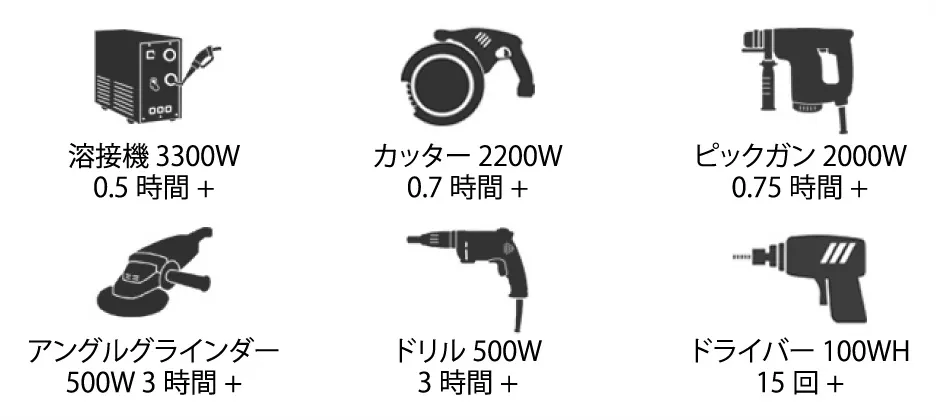 電気工具類のハイパワーツールにも、ご使用いただけます。