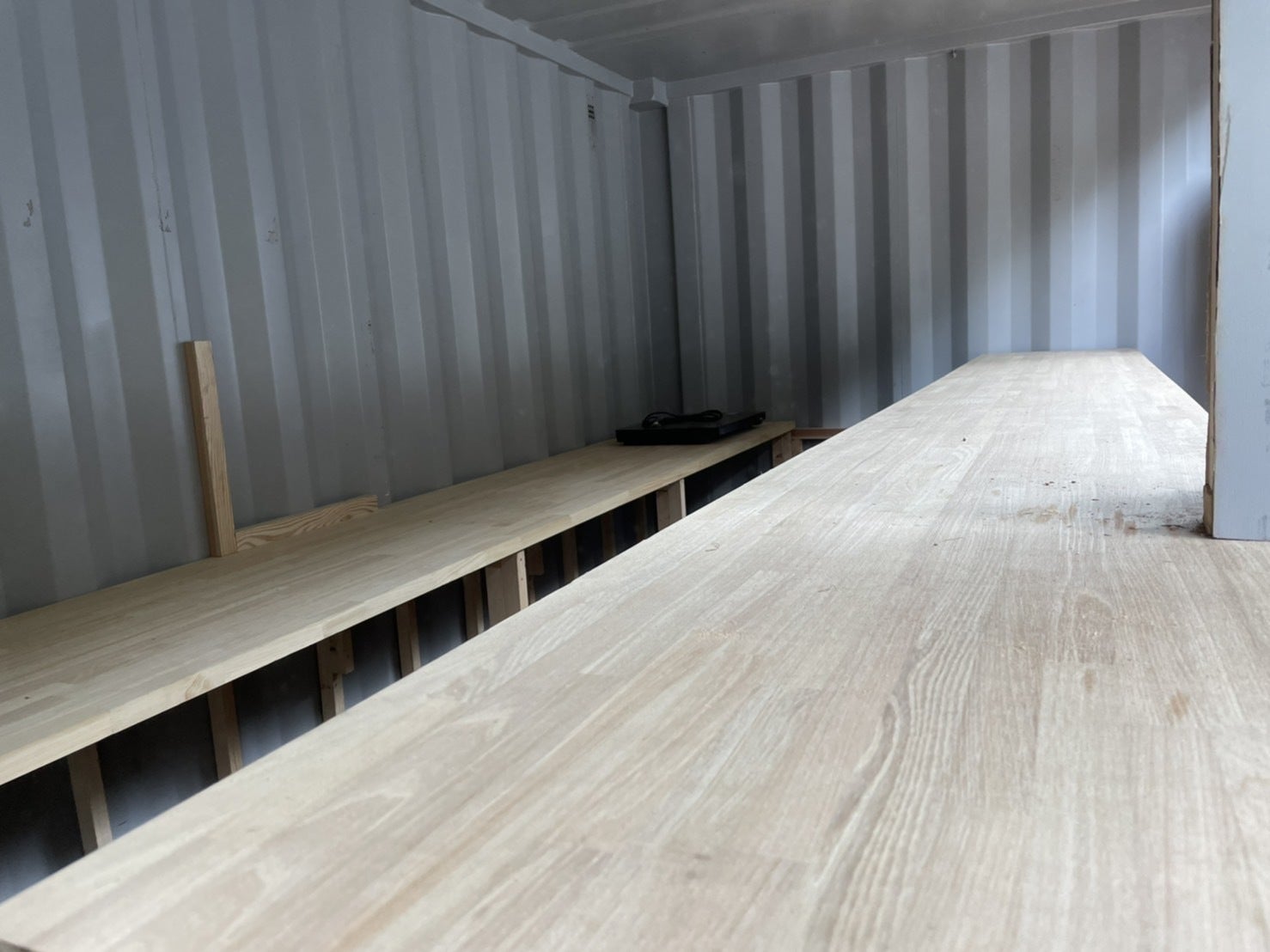 コンテナ内部は、壁や床、座席まで天然木を使用し、ヴィンテージな仕上がりになっており、非日常を味わうことが出来ます。