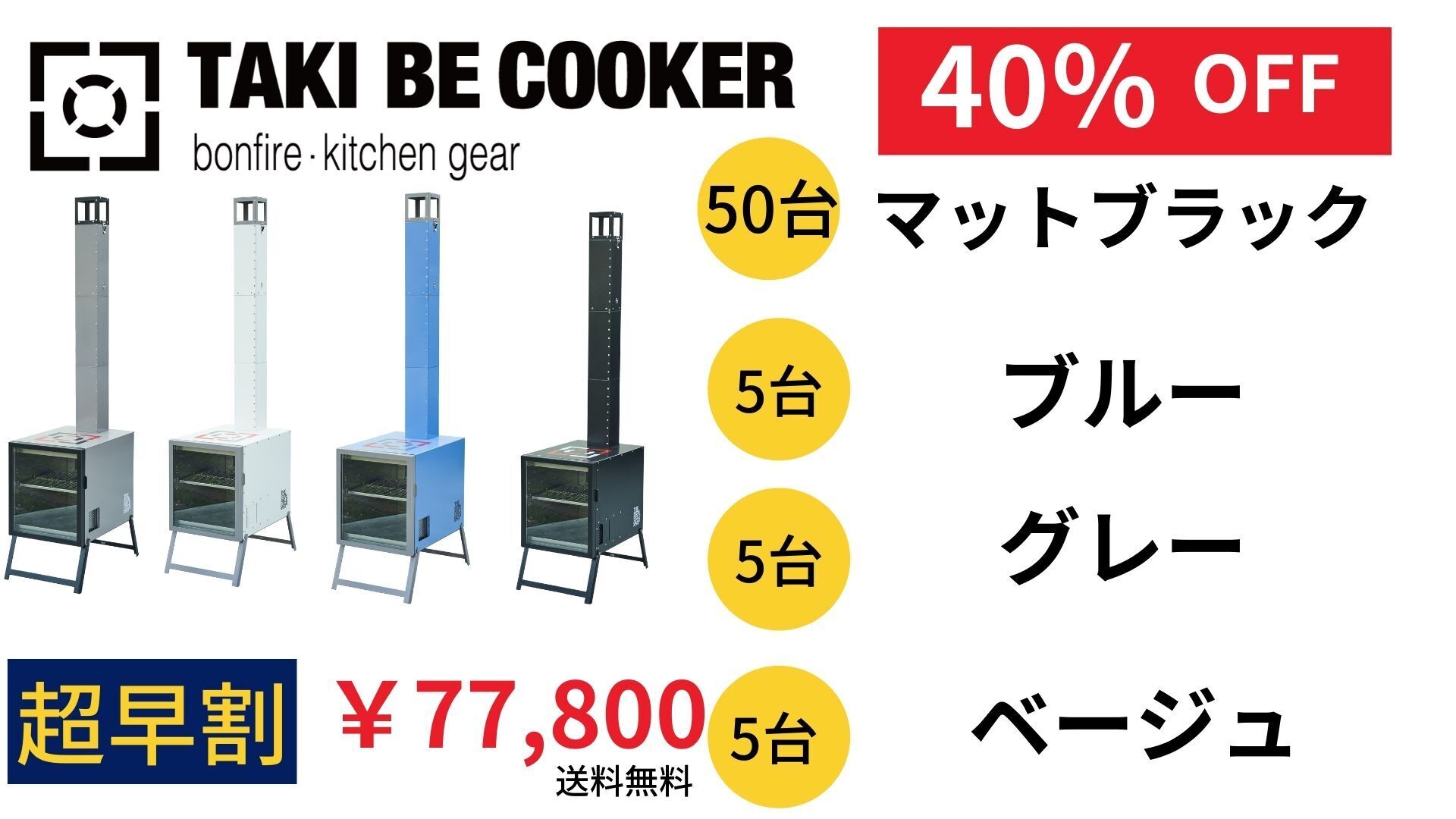 ・TAKI BE COOKERセット ※各色数量に限りがありますのでご注意ください。