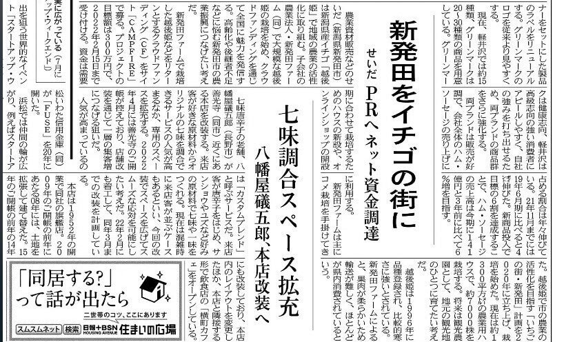 本日の日本経済新聞様に、新発田ファームの取り組みが掲載されました。web版でもご紹介頂いております!また、同じく本日の夕方18:15~のBSN放送「ゆうなび」様でも越後姫栽培についてご紹介頂く予定です。新発田ファームのライスセンターや苺ハウスを撮影し、越後姫栽培について・プロジェクト始動の背景、農業の現状などいろいろとお話しました。色づいた苺の様子をご紹介出来たら1番よかったのですが、生憎まだ赤く実った越後姫はない為断念・・・(泣)実が太り始めた収穫直前の苺の様子をご覧いただけると嬉しいです!(*'▽')そして、先週末ブログを更新しました。今後心配となる苺の病気についてのあれこれを綴りました。こちらも、ぜひ(^^)v