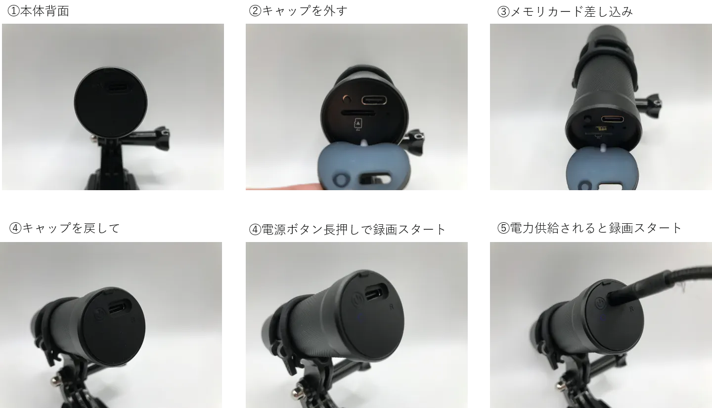さらに、付属のUSBケーブルを使用して充電しながら長時間連続録画ができます。