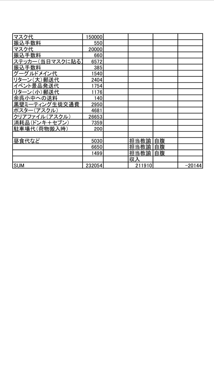 2022/04/25 14:452022年2月23日に無事にイベントを終えることが出来ました。イベントの詳細については下記URLよりご覧ください。ピンクマスクデー実行委員会 (pinkmaskday.com)https://www.pinkmaskday.com/?s=09また、このイベントに関する様々な取り組みもスタートし、多くのメディアにも取り上げていただきました。これもひとえに皆さんのご支援があったからこそです。本当にありがとうございました。随分と遅くなってしまいましたが、皆さんからご支援いただいたお金の用途も併せて添付させていただきます。どうしてもイベント開催においてこだわりたい部分が出てきて、少し当初の予定よりも足が出てしまいました。今年度は更なるパワーアップを考えると、予算の計画をもう少し増やす必要がありそうです。(領収書等もすべてピンクマスクデー実行委員会のWEBページにて掲載予定です)引き続きこのイベントを継続して行っていきたいと考えております。今年度も何卒よろしくお願い申し上げます。 もっと見る