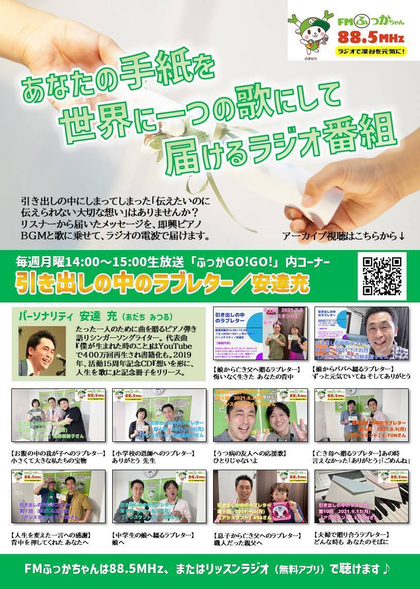 番組内コーナーとして、リスナーさんからの手紙を世界に一つだけの歌にして届ける『引き出しの中のラブレター』をお届けしています。