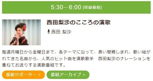 朝5:30から、「西田梨沙のこころの演歌」を担当しています。