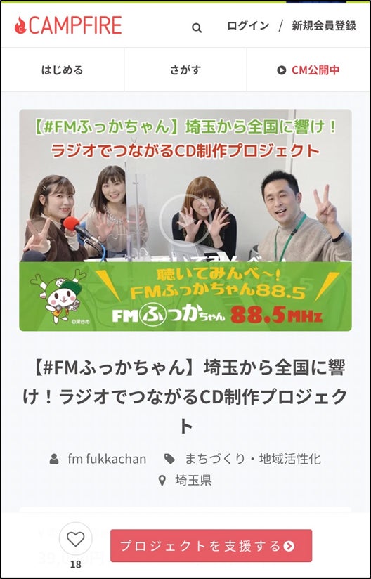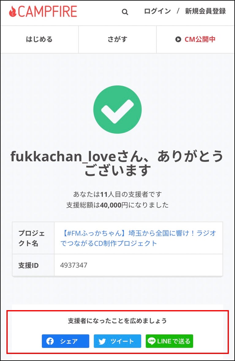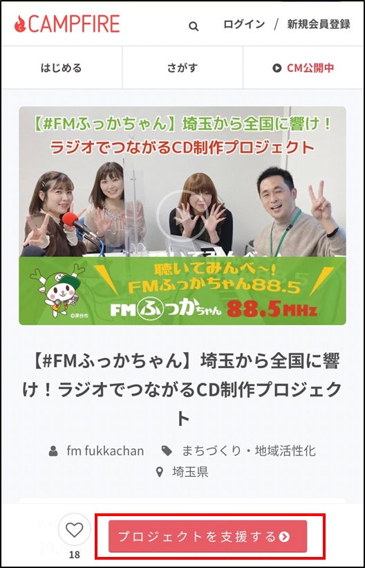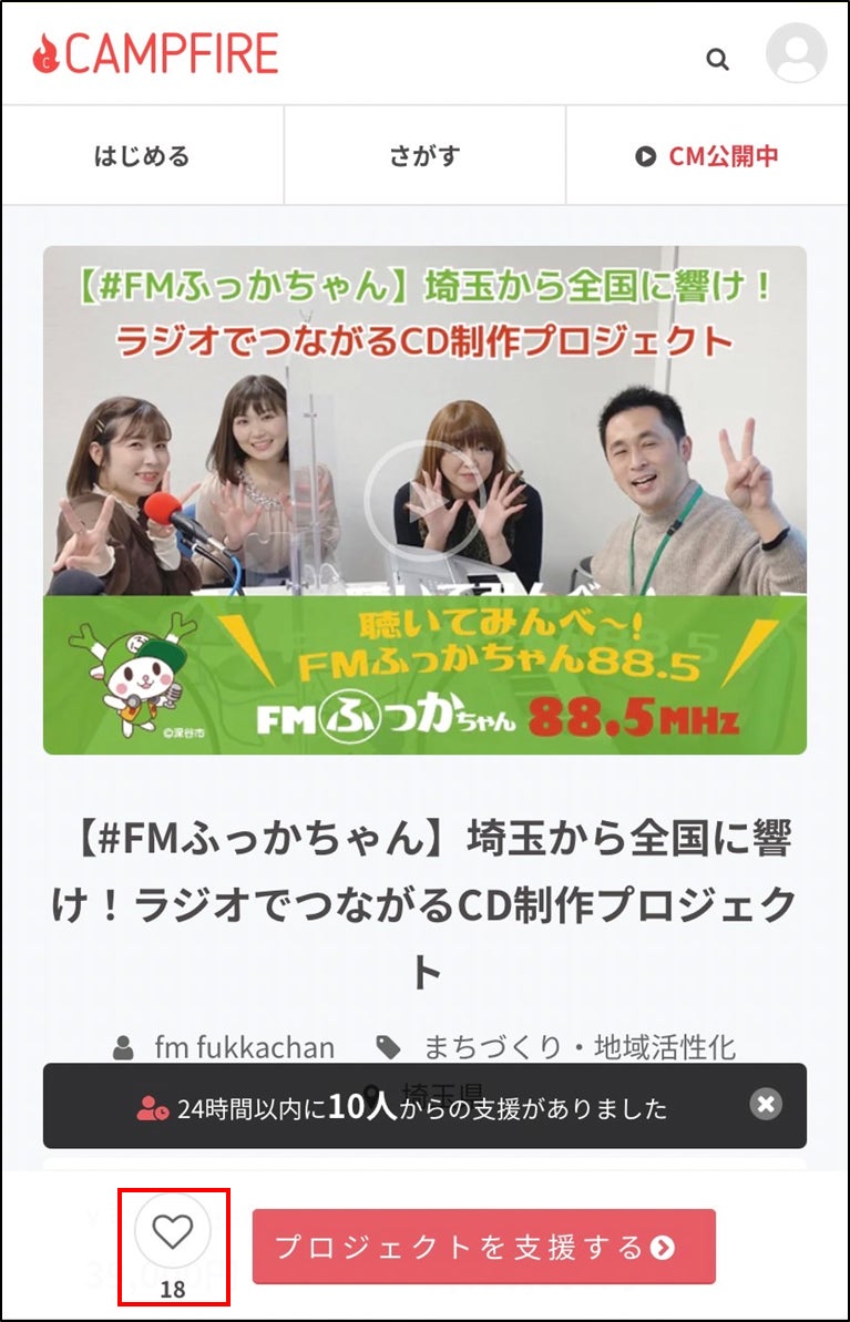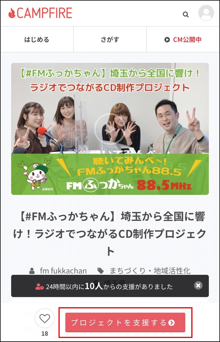 14、つづいて「プロジェクトを支援する」ボタンをタップ。