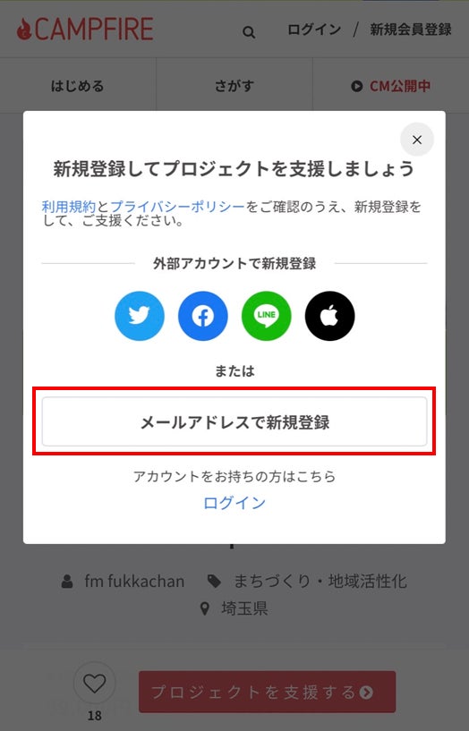 【注意】プロジェクト支援をする際には、アカウント登録(無料)が必要となります