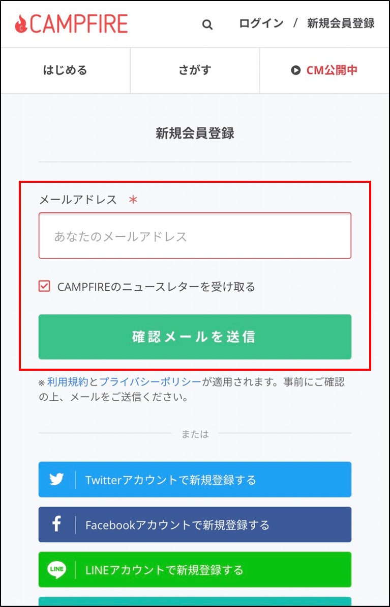 3、「メールアドレスで新規登録」をタップ。(SNS外部アカウントでの登録も可能です)
