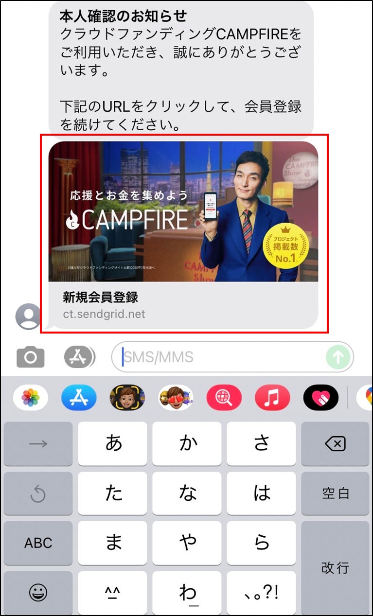 6、「本人確認のお知らせ」というメールのURLをタップする。