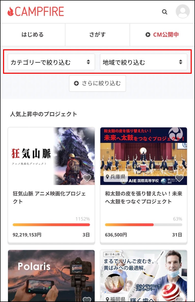 10、以下の画面に移動するので「カテゴリー」と「地域」を絞ります。