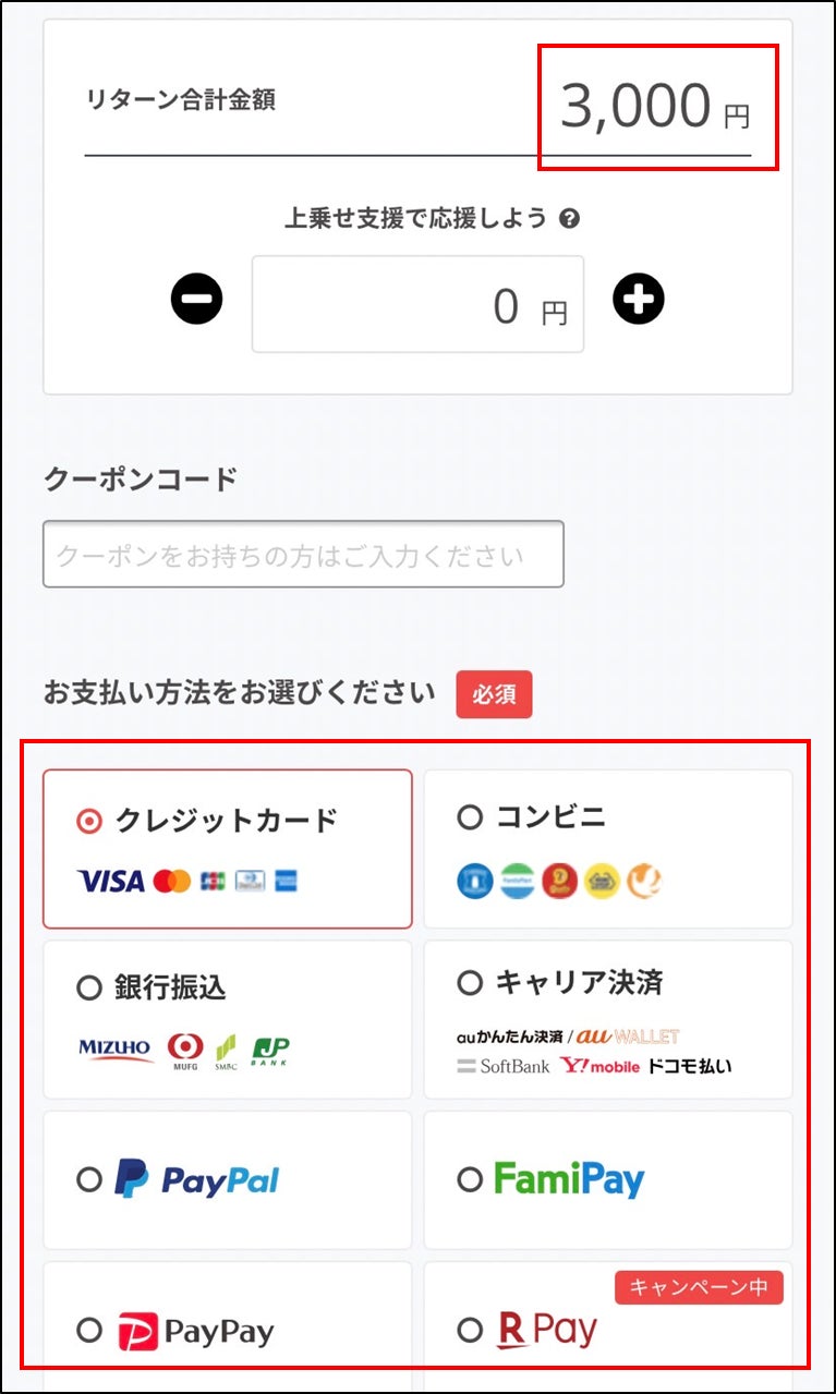 16、金額を確認したら(上乗せ可)支払い方法を選択します。
