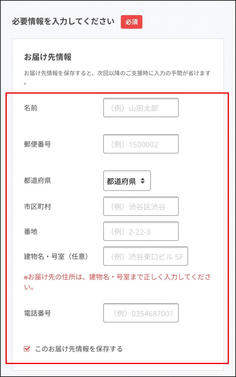 17、お届け先情報を記載します。(リターン発送に必要です)