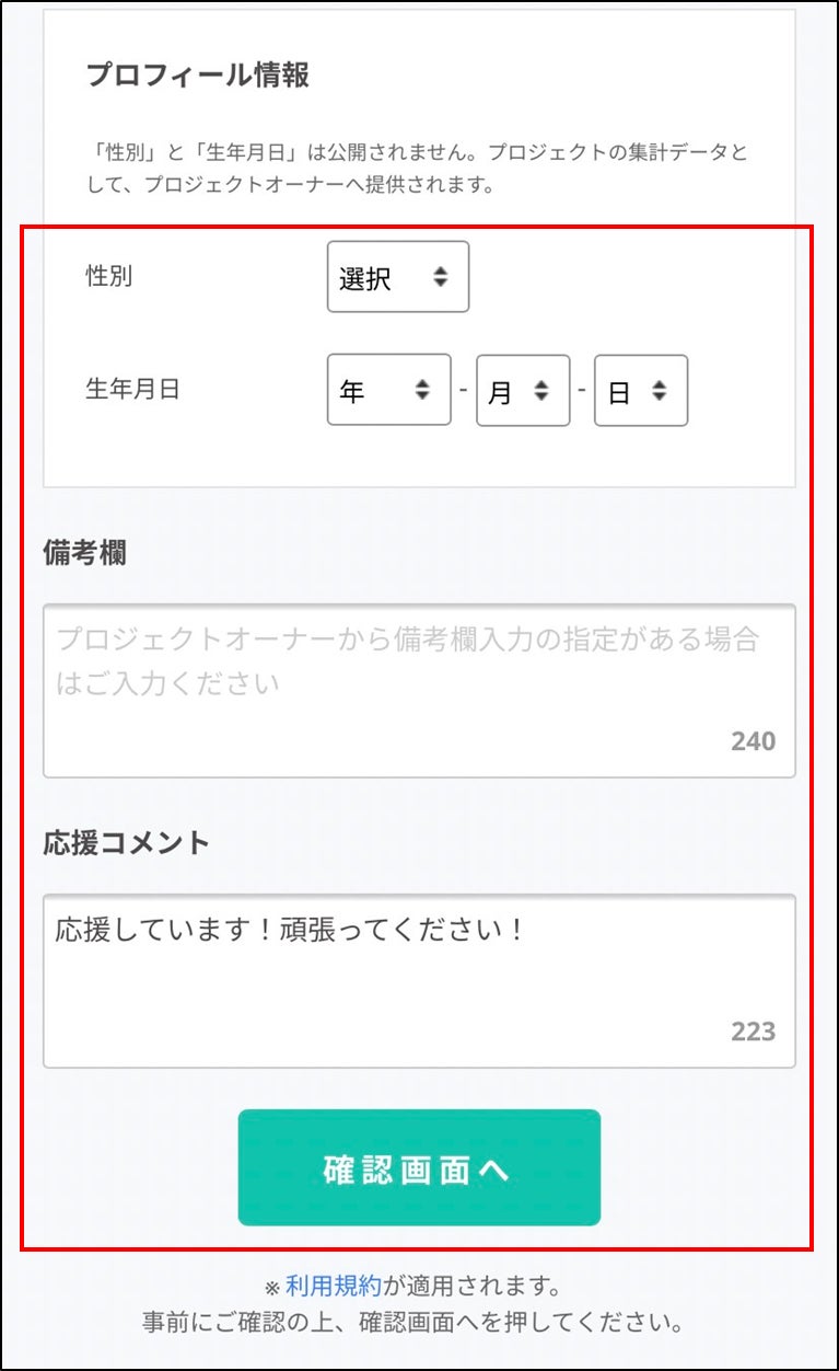 18、備考欄がリターンによっては必須であることにご注意ください。また、応援コメントは一般に公開されますので個人情報などを載せないようお願いします。