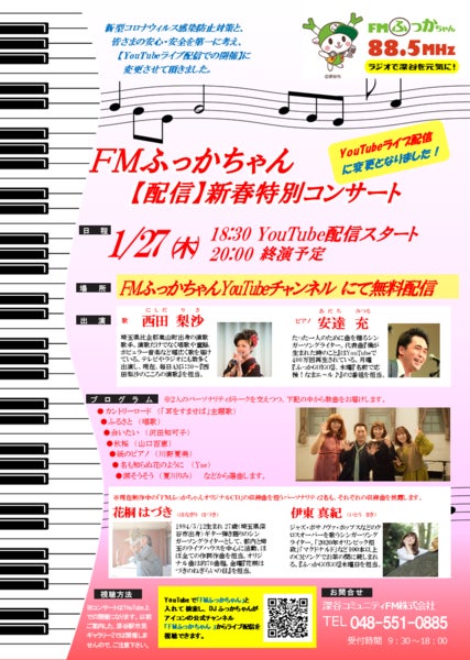 YouTube配信コンサートは【1月27日(木)18:30~】。