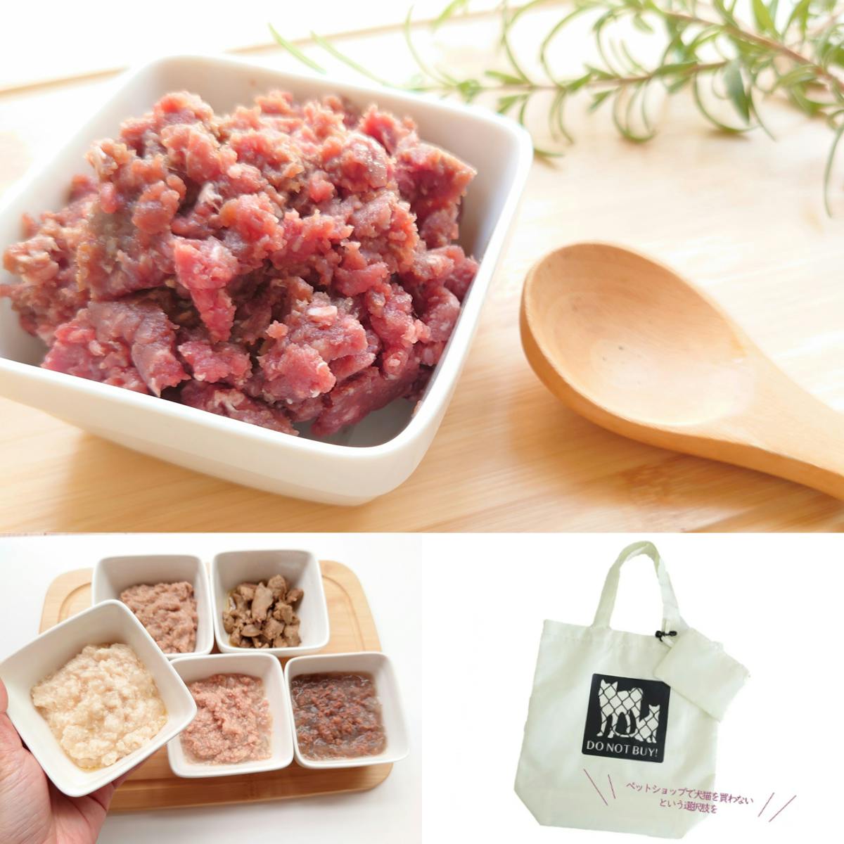 【生肉ミンチ250g・レトルト5種バラエティパック・オリジナルエコバッグ】
