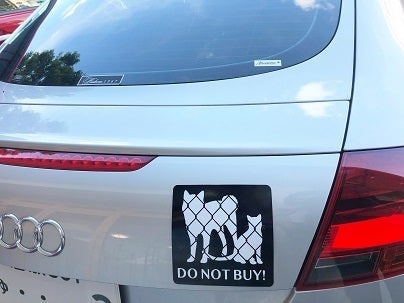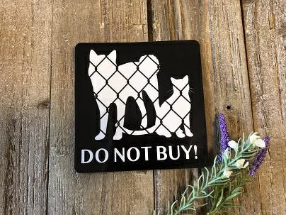 「買わないで!」生体販売反対啓蒙マグネットステッカー。
