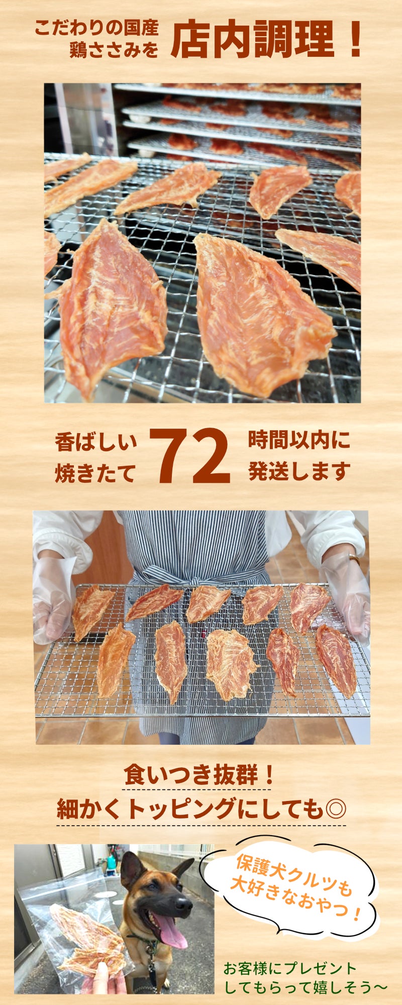 ■商品説明: ペットライフポッター店頭人気No.1!!店内で焼き上げしているので香ばしさが違います!うれしい国産原料のささみおやつです。トッピングにしても◎