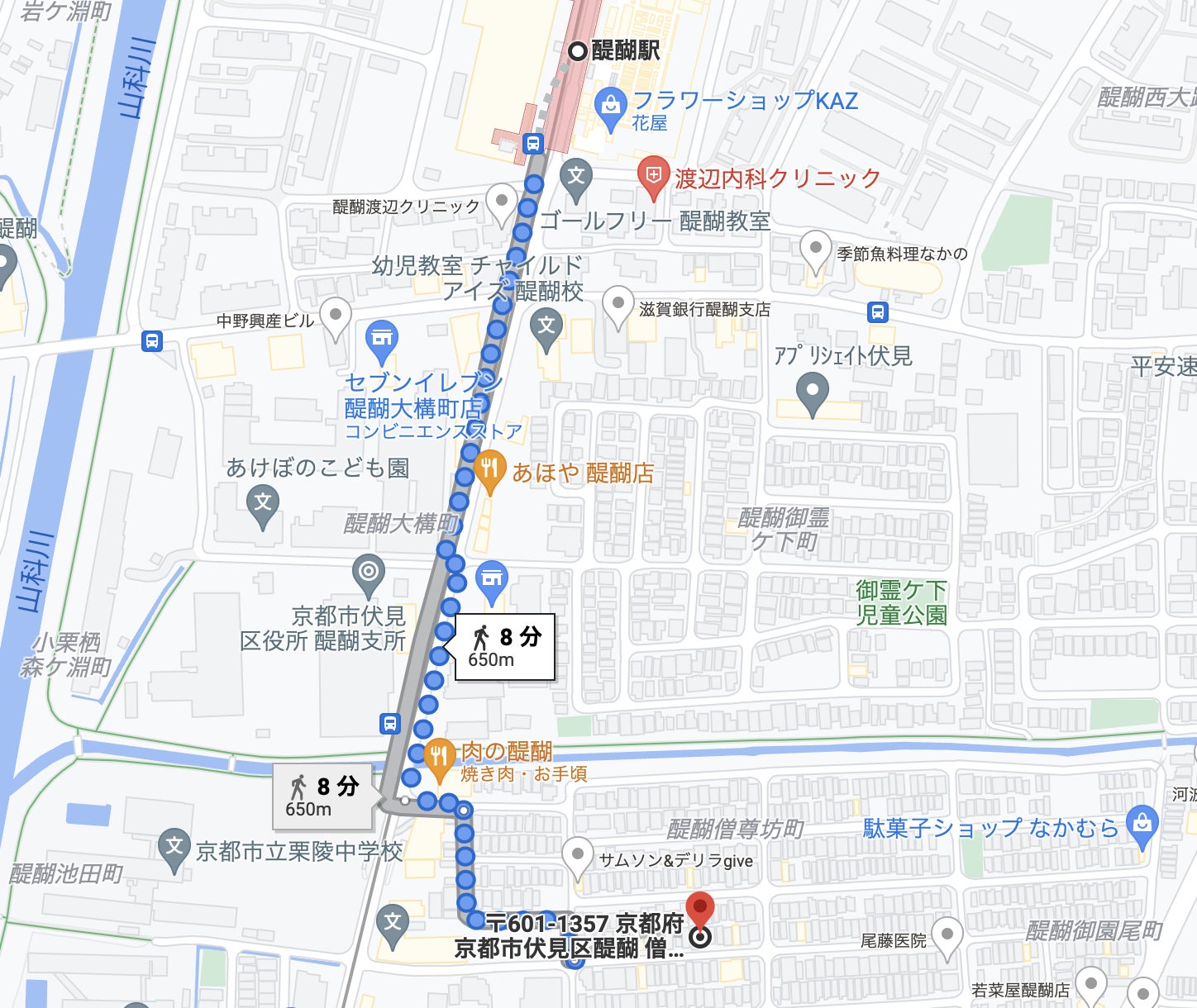 気になる移転場所は京都市営地下鉄醍醐駅徒歩8分のところです。
