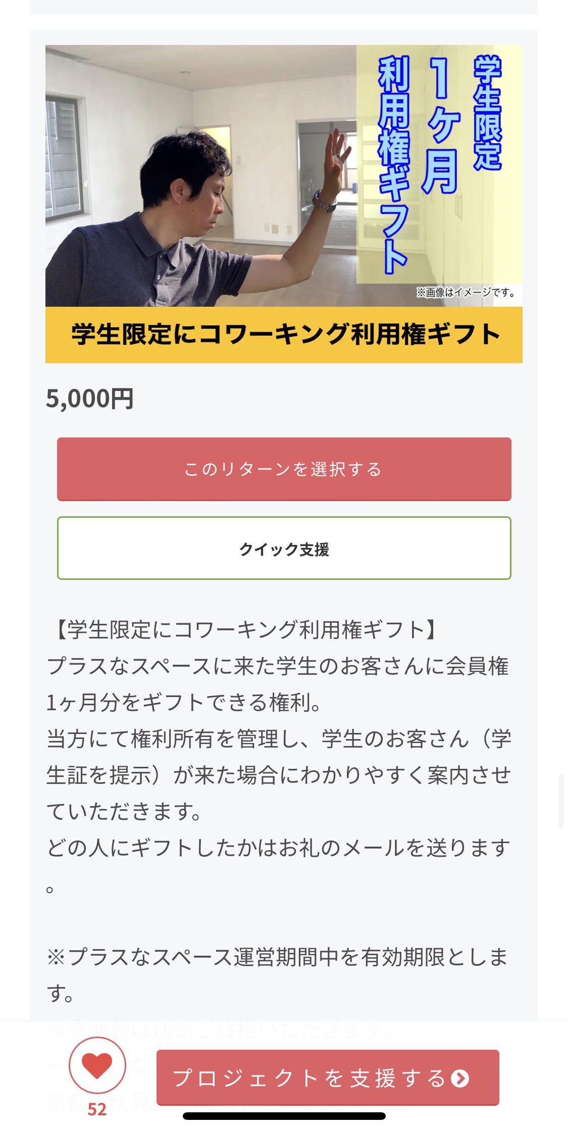 しかし、それよりもボクはそんな娘の姿を見て、同じような境遇の学生たちに何か新しい居場所を提供できないものかと今回のコワーキングスペース、そしてこのリターンを考えました。