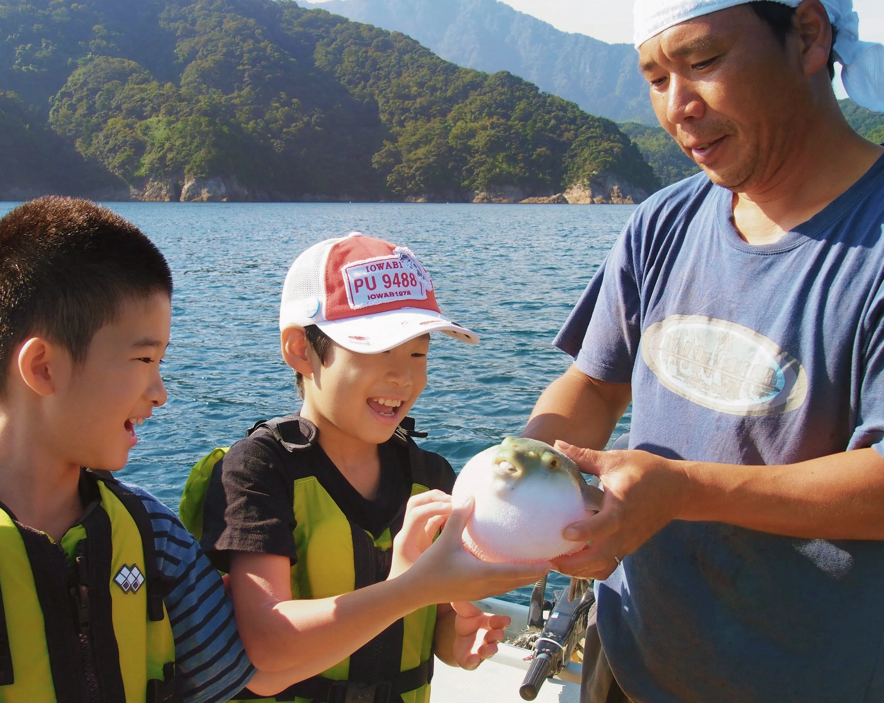 私共は、親子でお宿を営業をしつつ、若狭トラフグと福井マハタを養殖をしています。