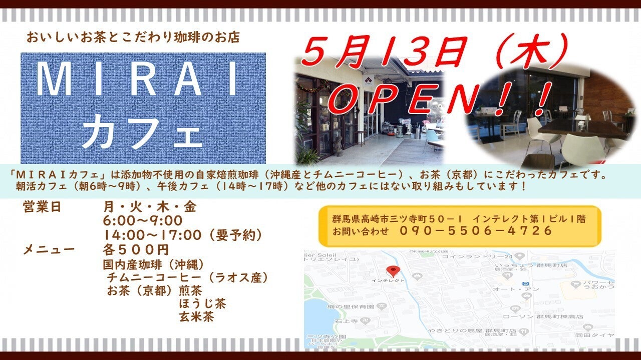 そんな経験から、自由に好きなことをチャレンジしたい人を応援し、ご縁を繋ぐ場所を作りたい、という理念のもと2021年5月、群馬県高崎市にMIRAIカフェをオープンしました。