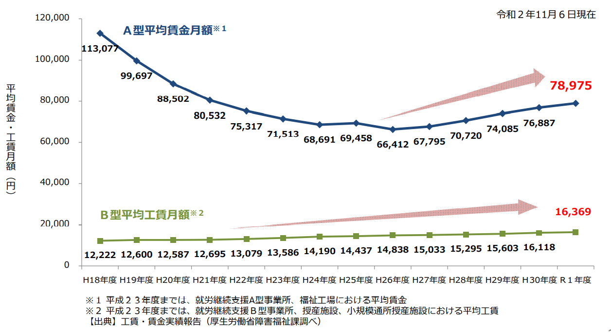 就労Bでの賃金がいかに少ないことか、お分かりになると思います。
